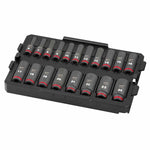 • (19) Metric Impact Duty Sockets (6mm, 7mm, 8mm, 9mm, 10mm, 11mm, 12mm, 13mm, 14mm, 15mm, 16mm, 17mm, 18mm, 19mm, 20mm, 21mm, 22mm, 23mm, 24mm)