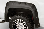 With their surface-mounted stainless steel bolts and massive presence, Boss™ Pocket Style(R) Fender Flares are a Bushwacker exclusive. Despite their aggressive bolt-on styling, Boss™ Pocket Style(R) Fender Flares install in minutes, with only minimal drilling required. They're custom-designed to complement oversized tires and high-clearance lift kits. You can mount them right out of the box, with their tough, OEM-style matte black finish - they're UV protected so they won't chalk. Or, paint them to match or accent the body color, for a factory-custom look. Boss™ Pocket Style(R) Fender Flares are made in the USA from our thick, warp-resistant Dura-Flex(R) 2000 material, tailor-made for added durability and flexibility on the trail. When you need maximum tire coverage with minimum time and effort, it's in the pocket. Boss™ Pocket Style(R) Fender Flares from Bushwacker.