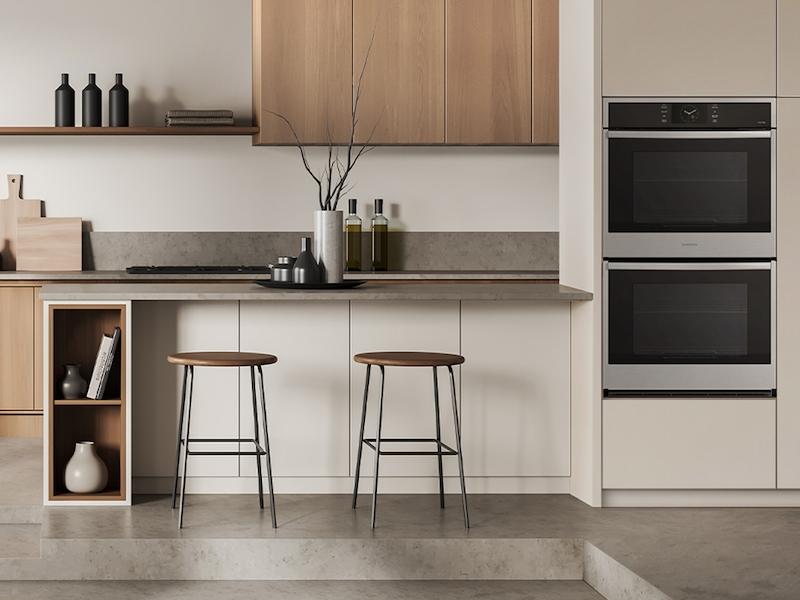 Wall oven provides healthier fried foods with its Air Fry mode and no preheating needed.