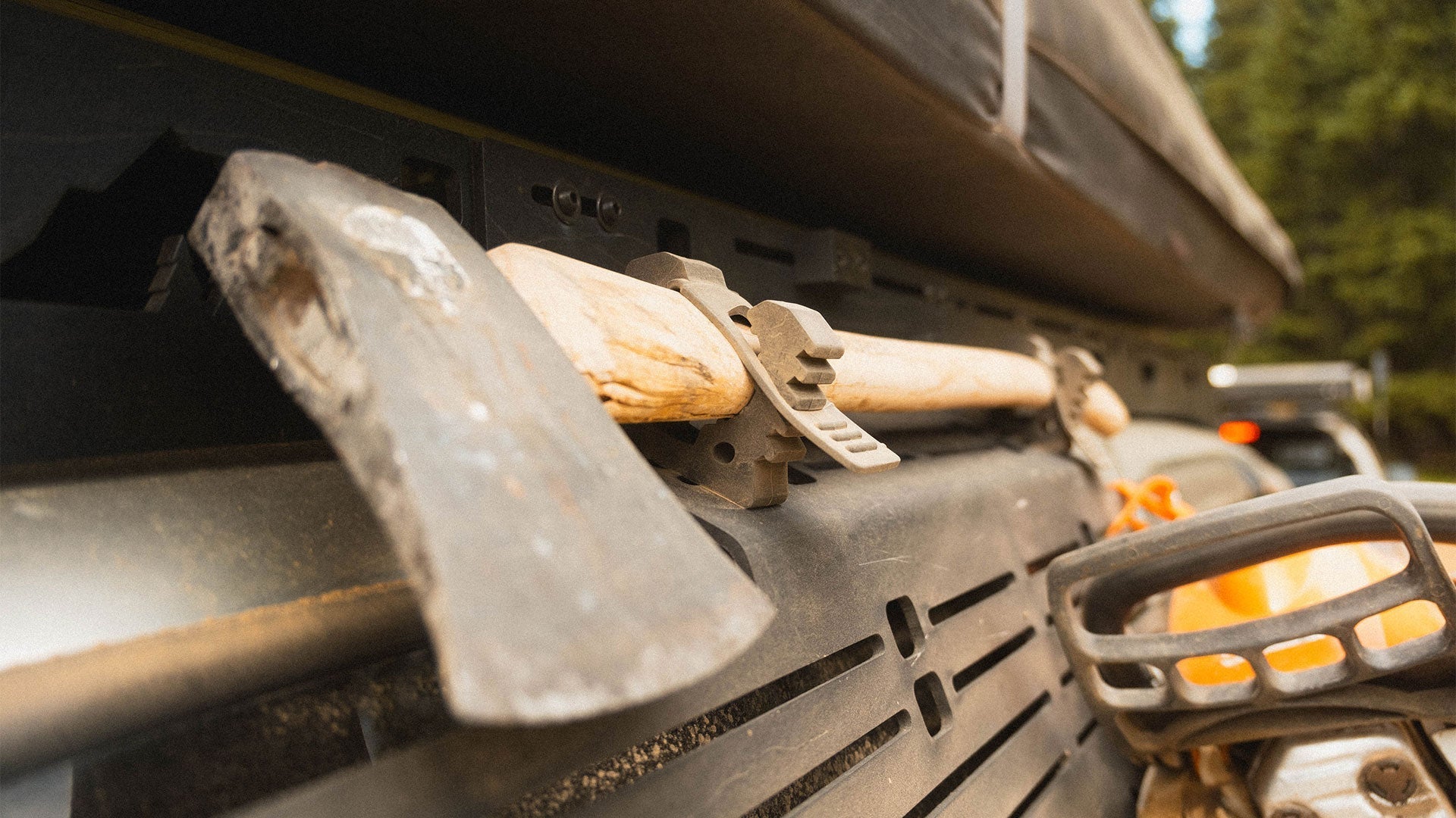 A new way to mount your essential gear for easy access and more storage on your 3rd Gen 4Runner. Made out of 3/16 aluminum, this lightweight yet strong panel allows you to add convenient mounting options to the side of your vehicle. Perfect to mount your recovery gear, fuel, water, shovel, axe, first aid kit, or nearly anything that can be bolted or strapped down. Compatible with most standard awnings using Sherpa Awning Mounts. Designed to match the window shape of your 4Runner, this bolts to your Matterhorn or Antero rack at the top and suctions to the window at the bottom. No drilling or other modifications are necessary.