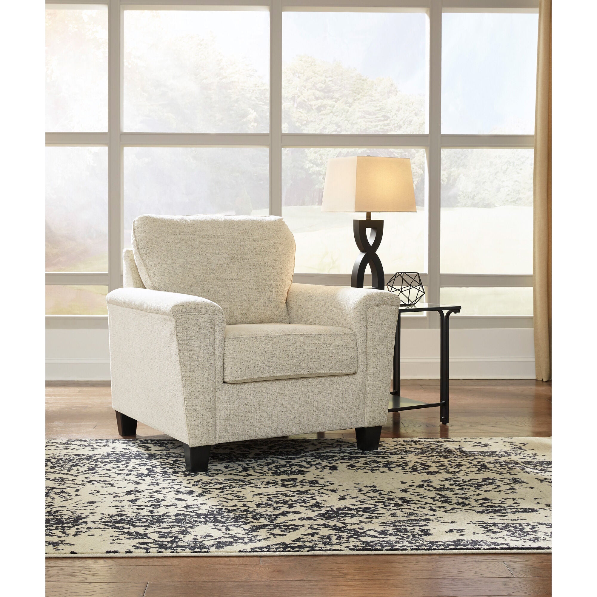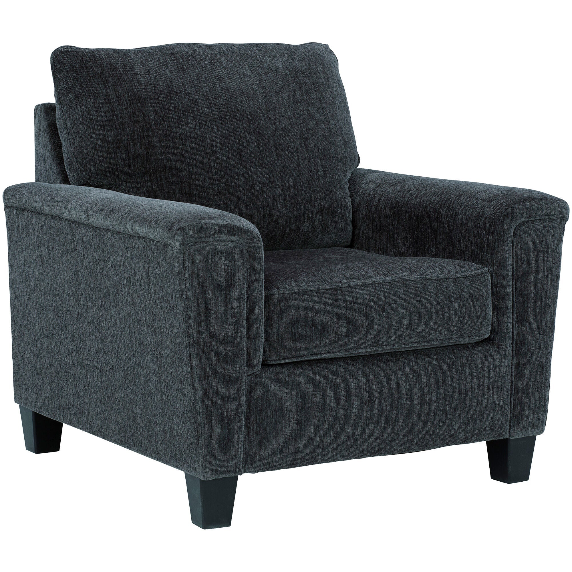 Lighten the mood with the Abinger accent chair. It's versatile in style and color, so you can pair it with lots of contemporary or transitional furnishings—but it completes the rest of the Abinger collection beautifully. You'll love the plush chenille upholstery, the angled side profiling and gently padded track armrests. This easy chair has a corner-blocked frame, and high-resiliency foam cushions wrapped in thick poly fiber.