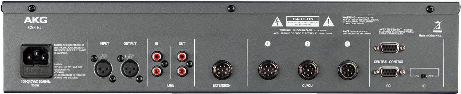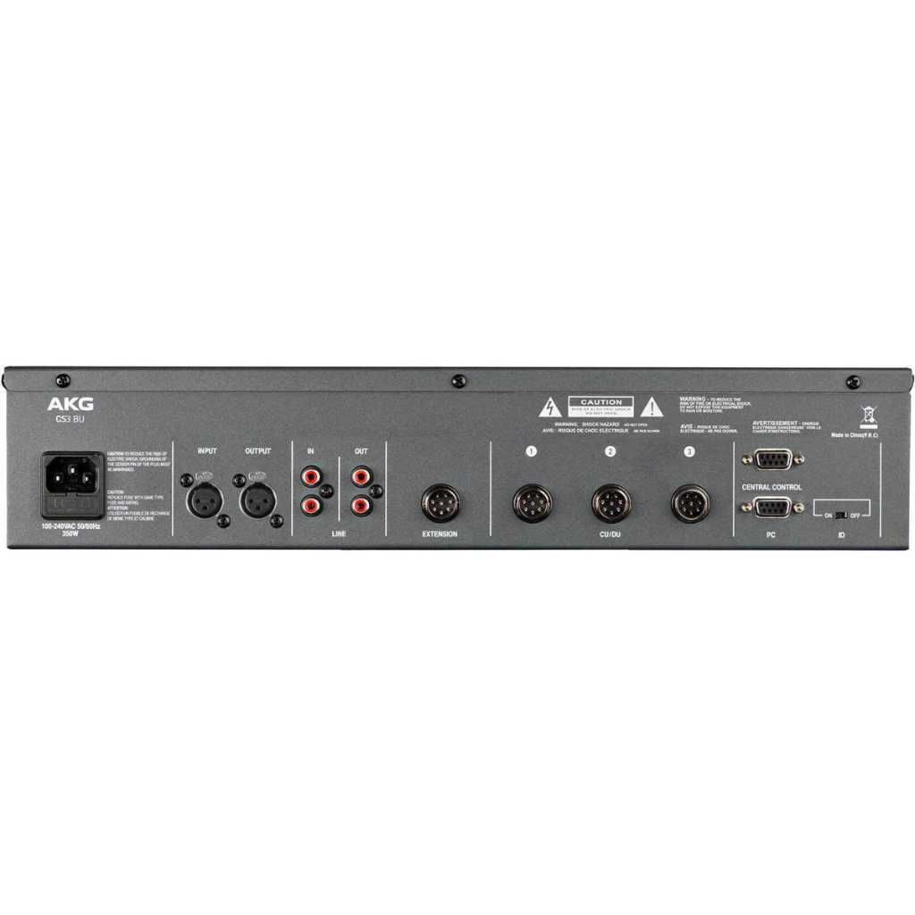 The AKG CS3BU Base Unit is the ultimate solution for managing conferences, whether mobile or fixed installation. Designed to support up to 60 microphone stations, this robust base unit serves as the core interface for all audio devices within a meeting room. With its versatile RS232 interface, users can effortlessly connect to optional camera control systems, enhancing the overall conference experience.