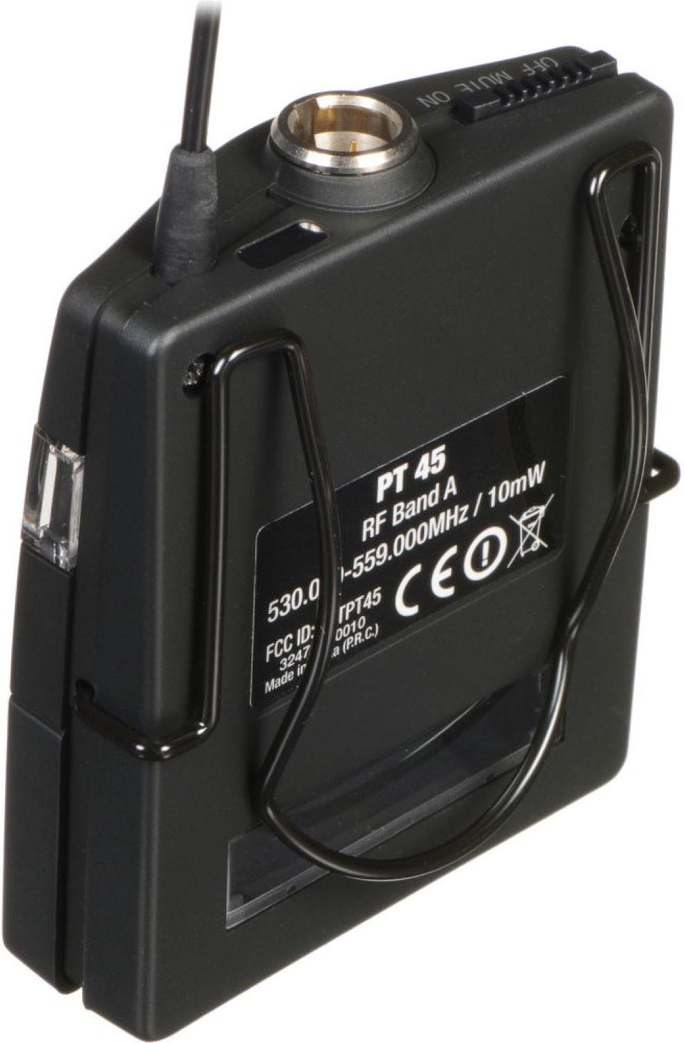 Upgrade your audio experience with the AKG PT45 High-Performance Wireless Body-Pack Transmitter - Band A, your dependable partner for live performances and presentations alike.