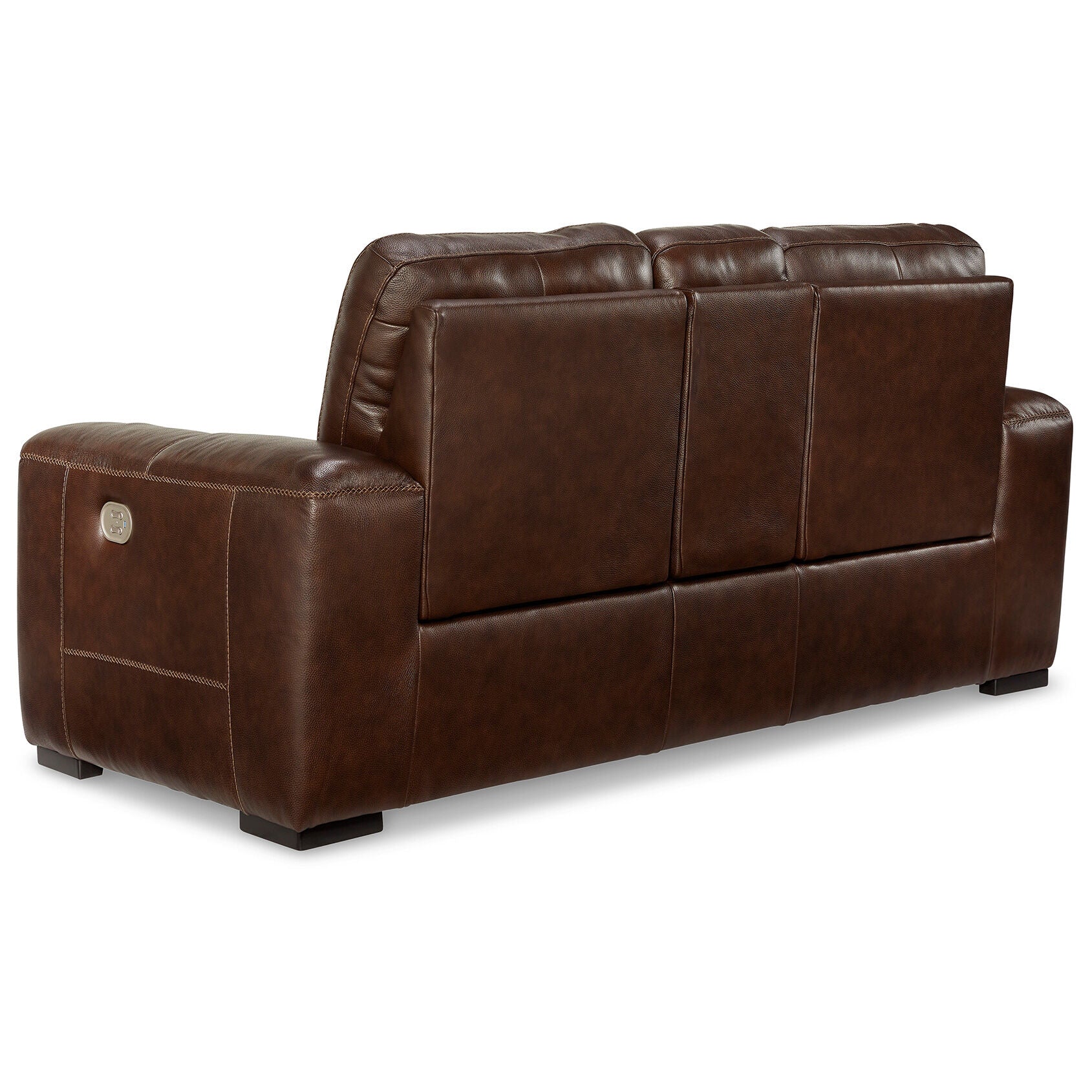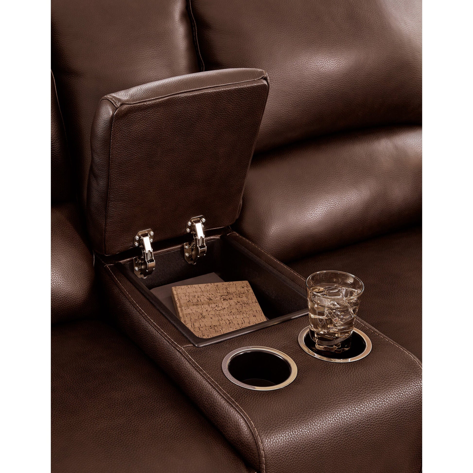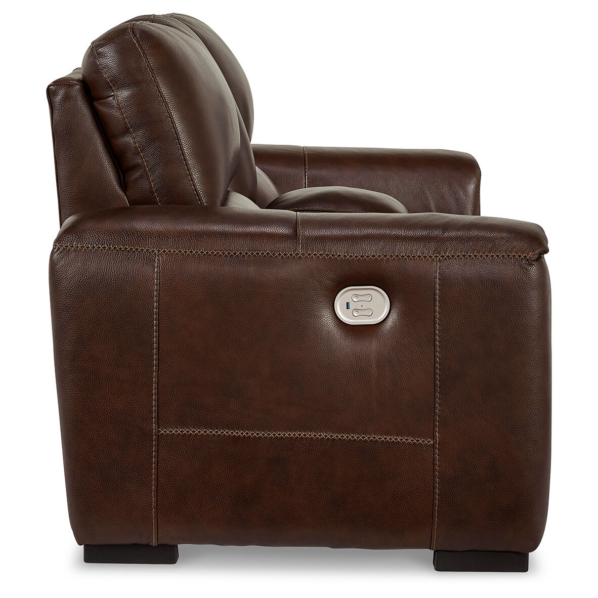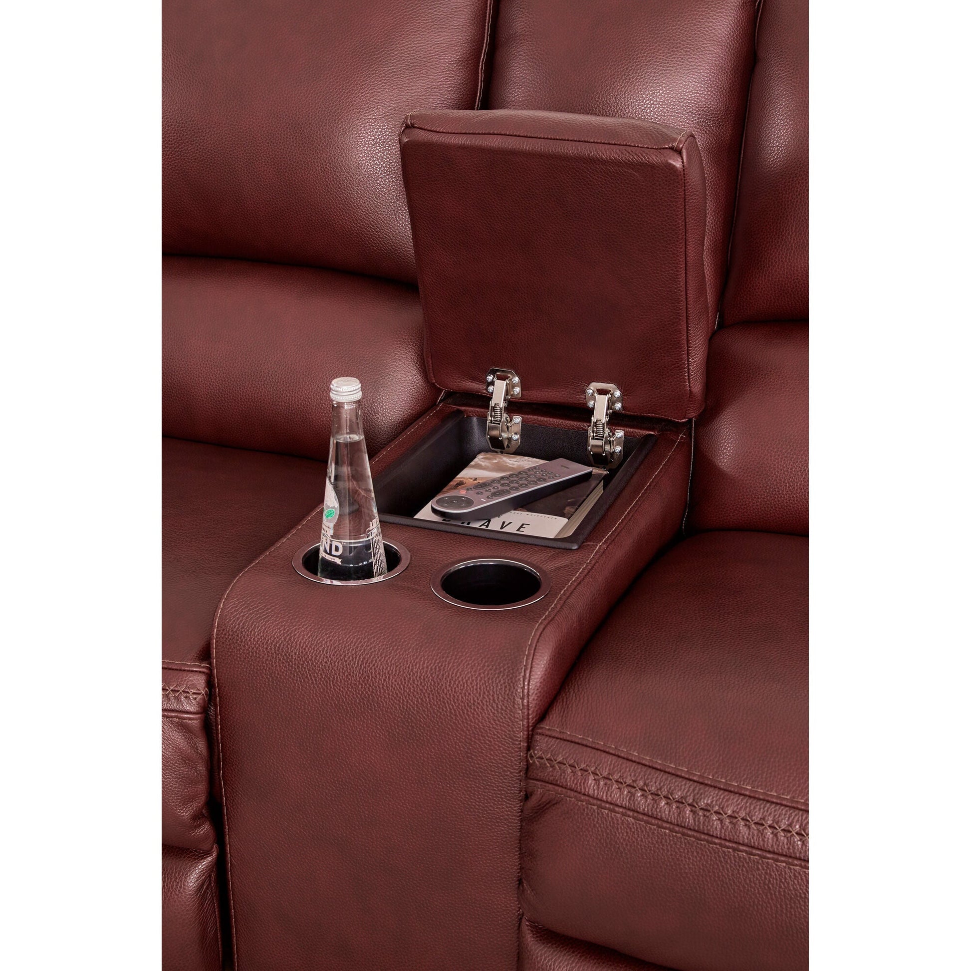 Impressive in scale while keeping an air of refinement, this power reclining loveseat stuns with soft, supple leather match upholstery in garnet. Sink into real leather in the seating area and inside back while catering to your comfort with one-touch power reclining and an adjustable headrest. Complete with USB charging, this loveseat makes a surefire statement in your contemporary living room. - Product Details provided by Manufacturer, Slumberland not responsible for errors in information.