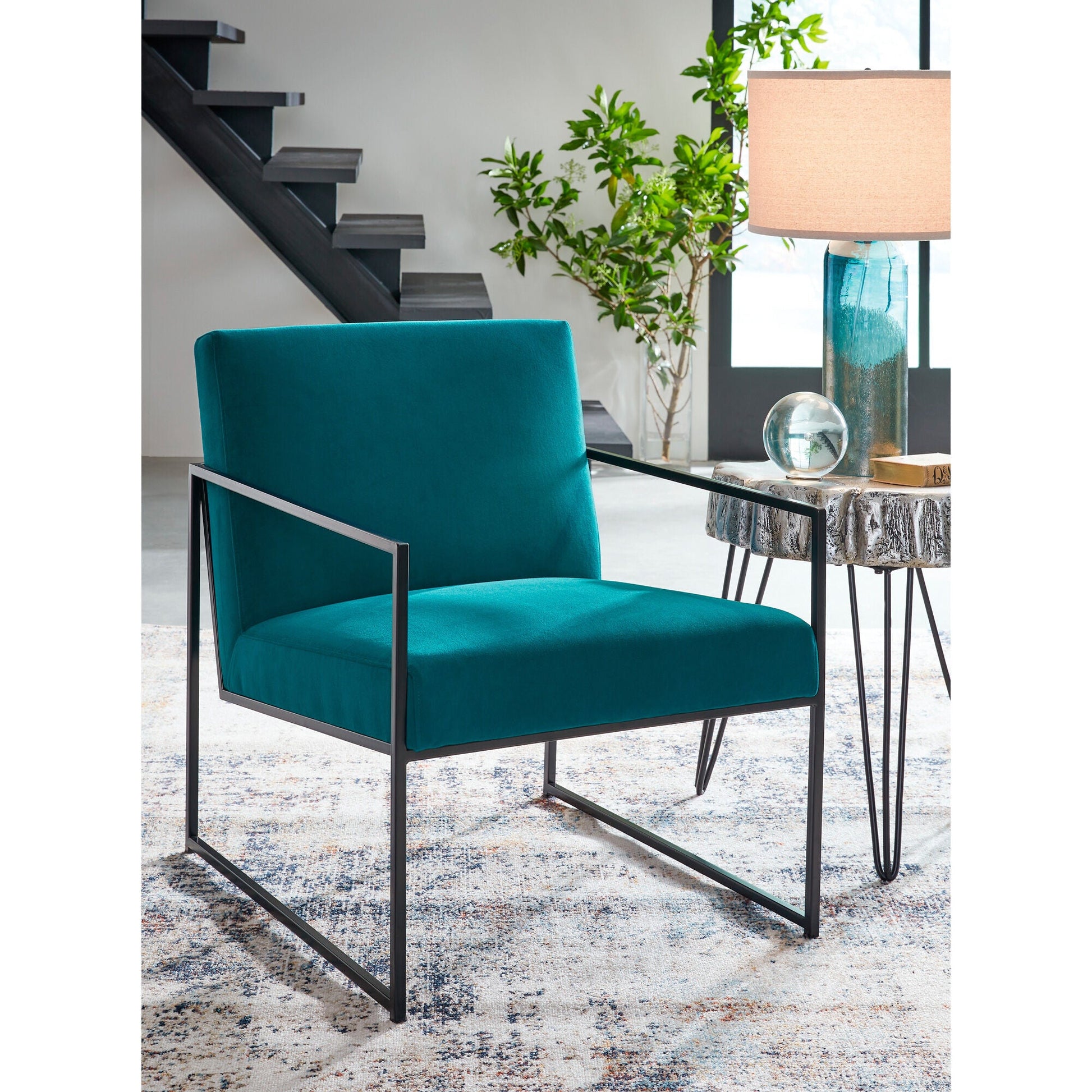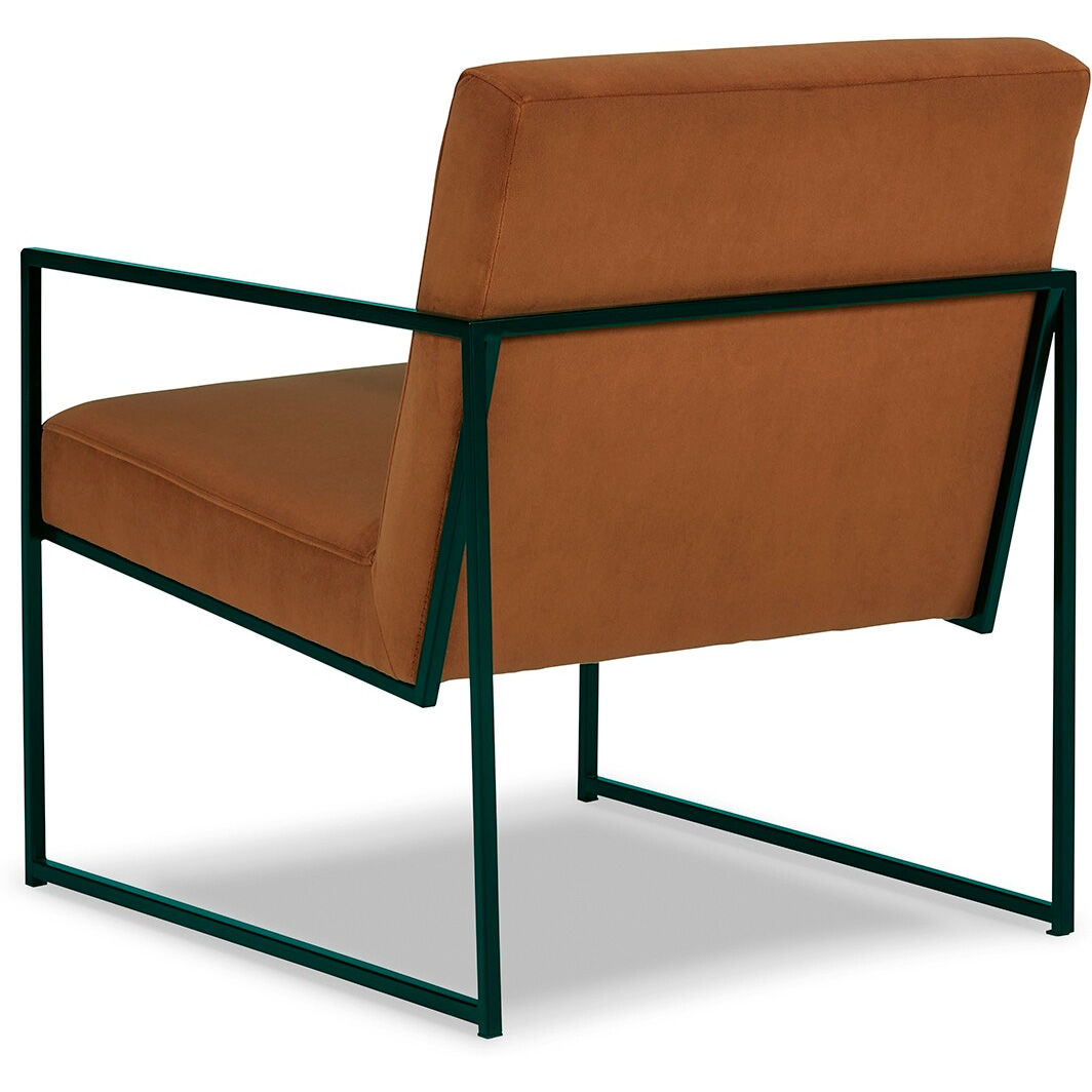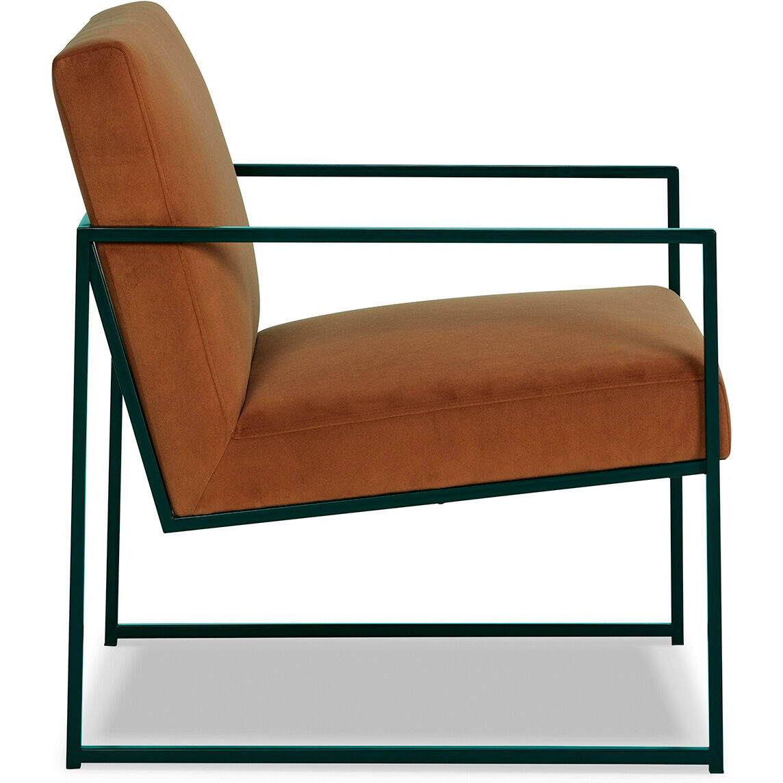 Dress up your reading nook or den with the decidedly contemporary stylings of this accent chair. Spice-hued velvet fabric provides a pop of soft color while remaining reserved and refined in appearance. A streamlined metal frame polishes off the posh design.