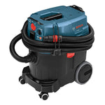 The Bosch VAC090AH 9-Gallon Dust Extractor with Auto Filter Clean and HEPA Filter provides a complete package that is designed to help users move toward compliance with the OSHA silica dust regulation. The dust extractor delivers a maximum 150-cubic-feet-of-air-per-minute rate (CFM), with a sustainable 97 In. static water lift (maximum). The automatic on-board filter-cleaning system activates every 15 seconds to help maintain maximum suction power. The included HEPA filter captures 99.97% of particles at 0.3 microns and larger. The included fleece filter bag helps to protect the filter and provides the optimal containment of dry dust and debris. The dust extractor also has power tool activation that allows the tool to activate the vac and a Power Broker dial to match the suction force to application.