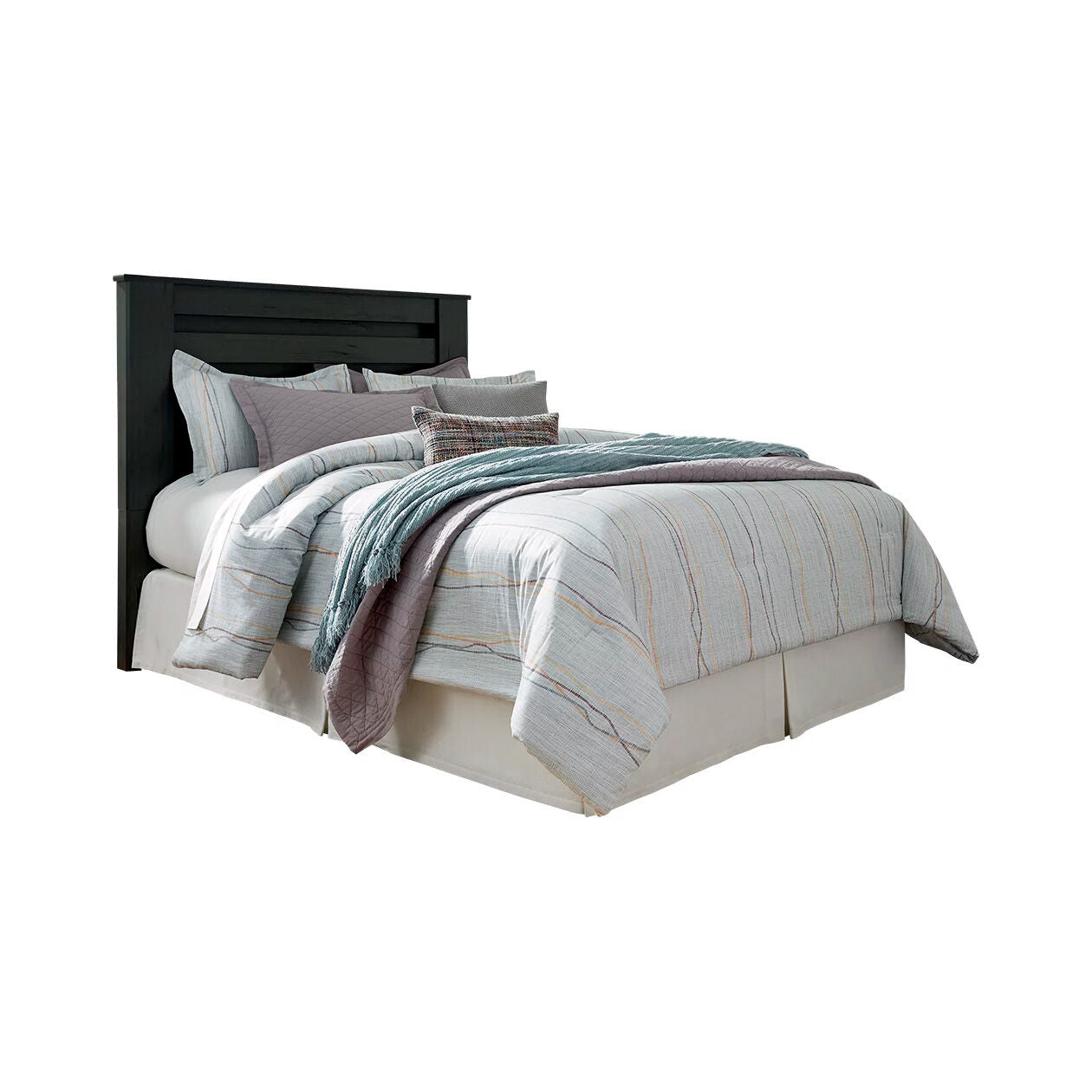 Priced to entice and styled to impress, this alluring full headboard is urban sophistication with a decidedly relaxed air. It's got the crisp, clean lines of a contemporary piece, but with an earthy element. Deep, horizontal grooves infuse depth and dimension, while a replicated oak grain effect gives the charcoal gray finish warmth and character.