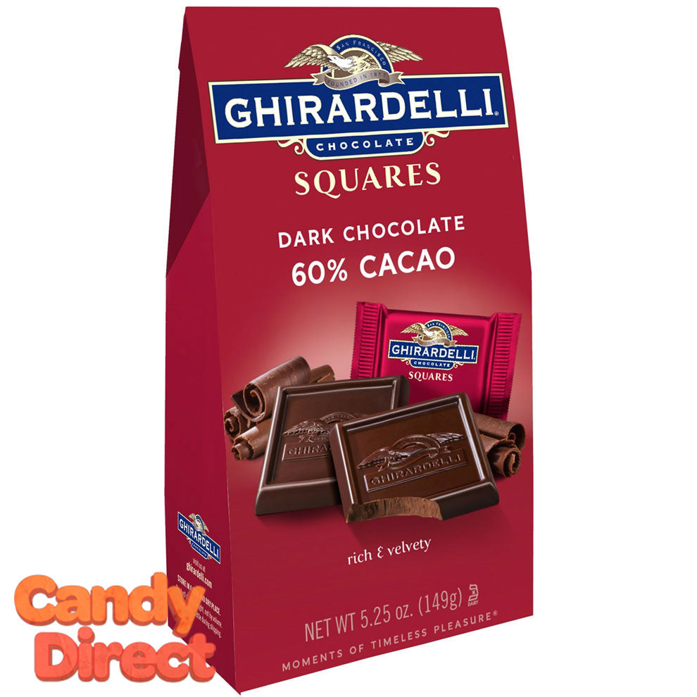 Dark chocolate with 60% cacao squares from the world famous chocolatier Ghirardelli. These gift bags are great for special occasions. 5.25oz bags.