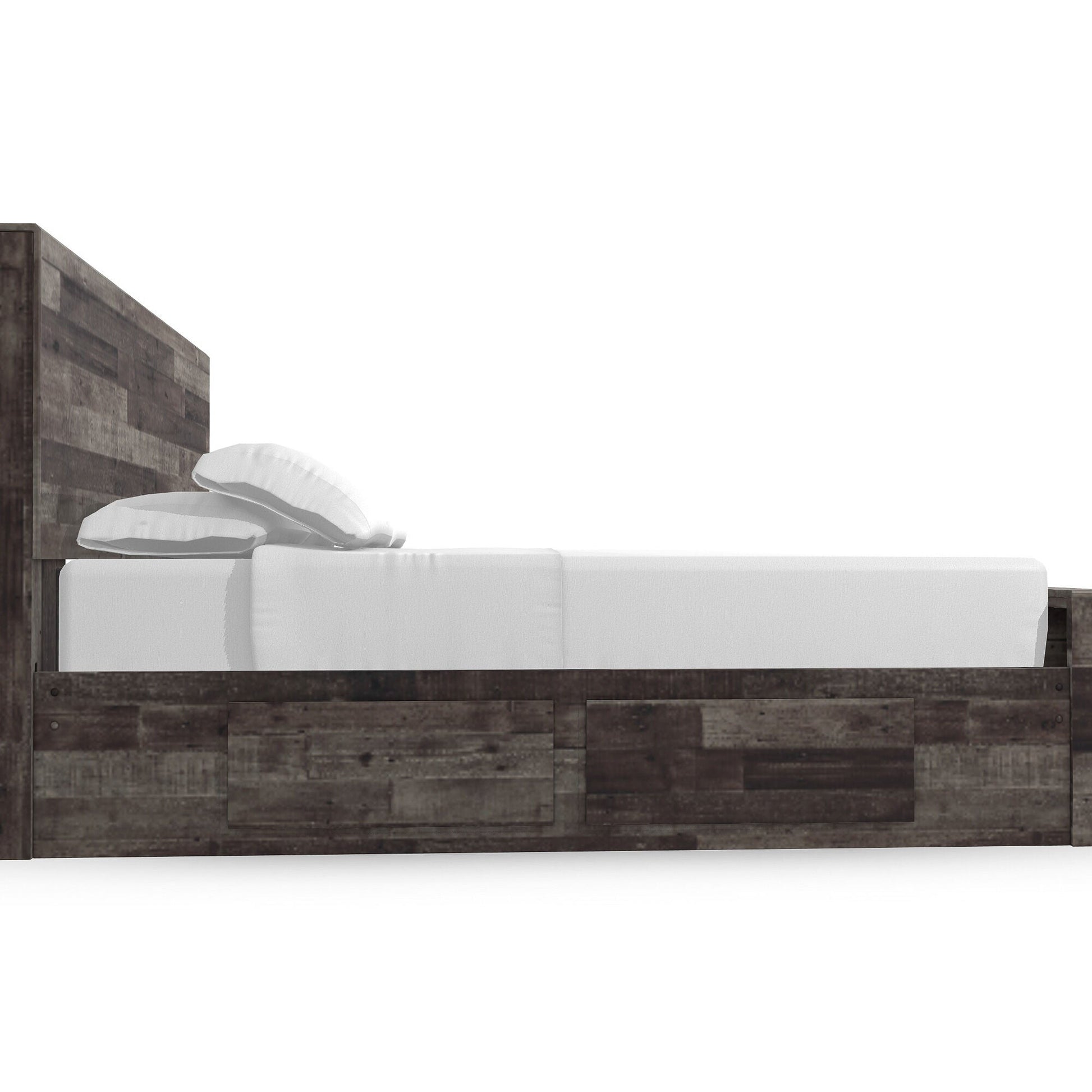 Modern yet hefty. This twin panel bed with storage makes an urban eclectic statement. Seasoned raw wood look merges with the clean lined design we love today. Muted rustic finish over replicated pine grain maintains its authenticity for a beauteous look. Storage underneath the bed provides ample space for placing belongings out of sight. Mattress available, sold separately. - Product Details provided by Manufacturer, Slumberland not responsible for errors in information.