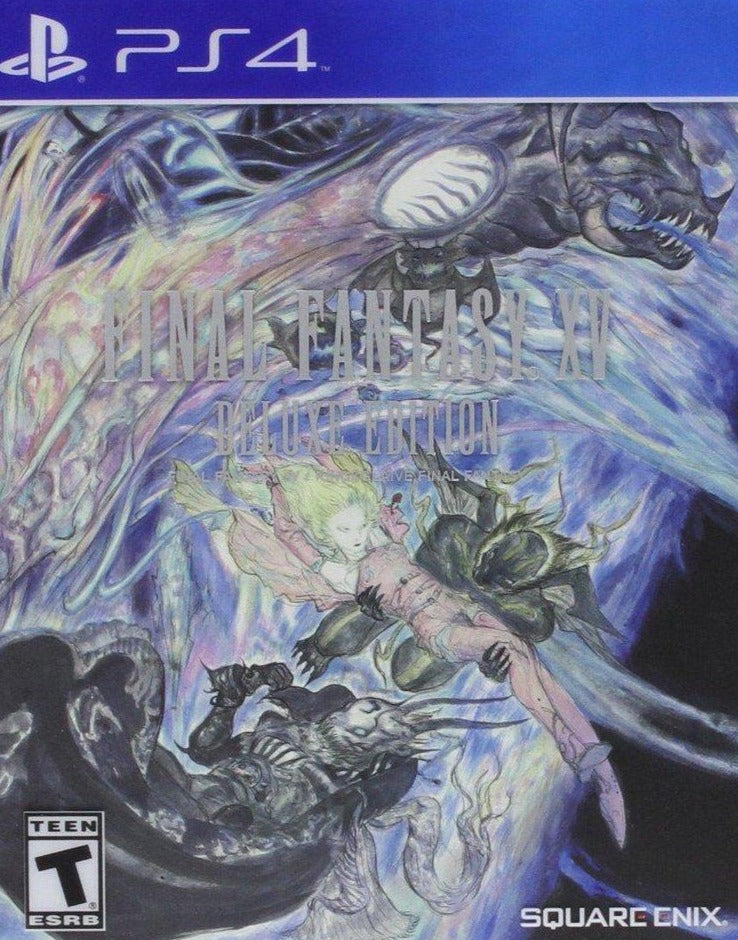 Final Fantasy XV: Deluxe Edition includes Final Fantasy XV game and Kingsglaive Movie in an Exclusive Steelbook featuring artwork from Yoshitaka Amano.