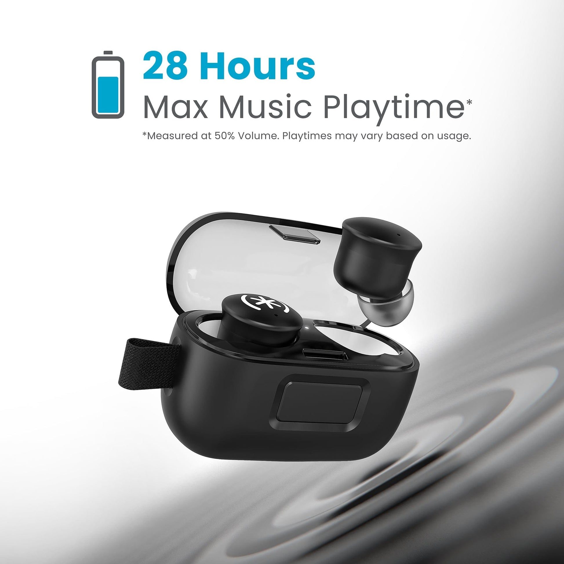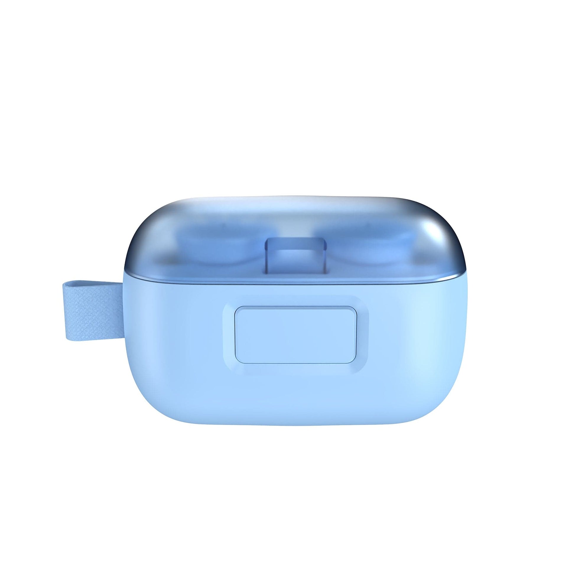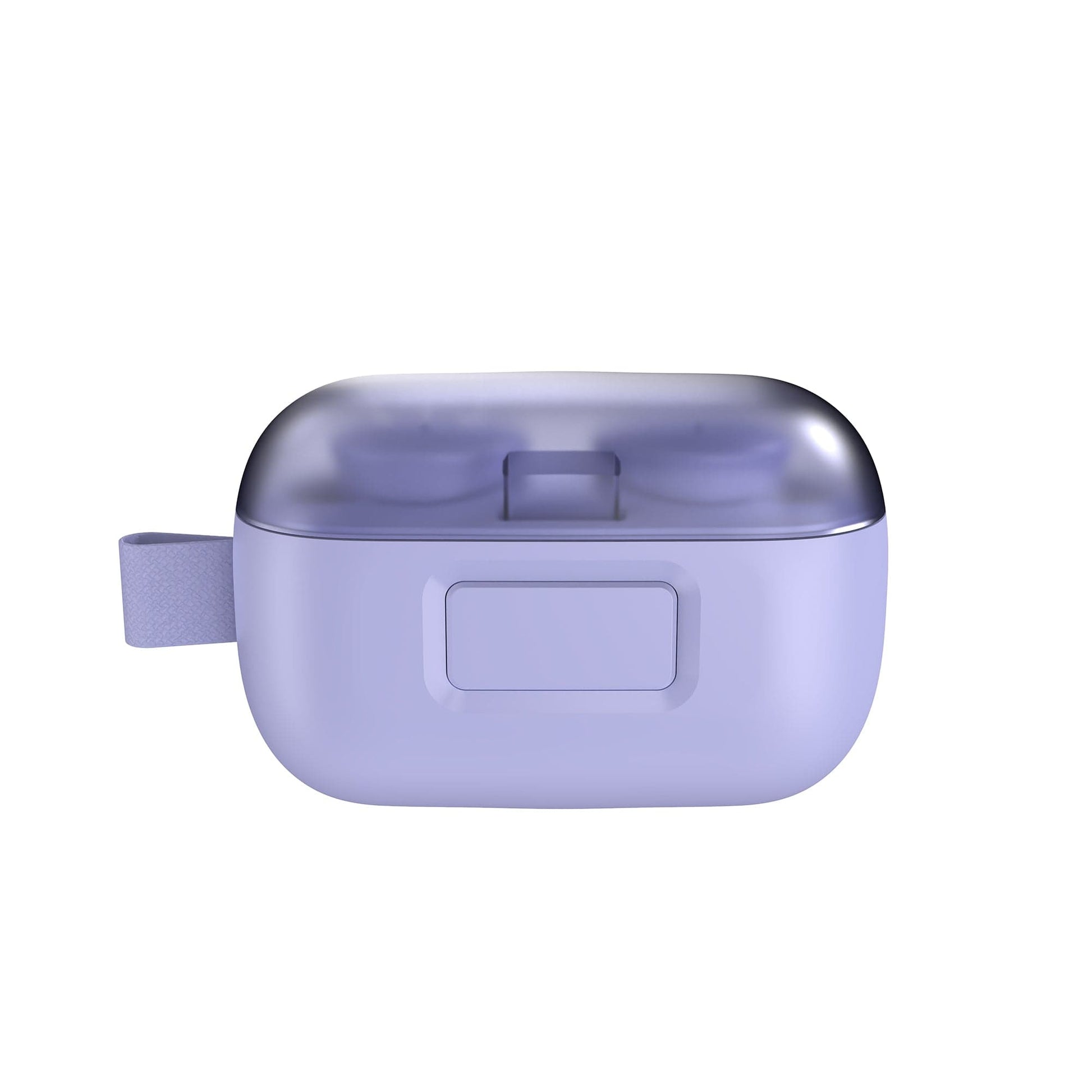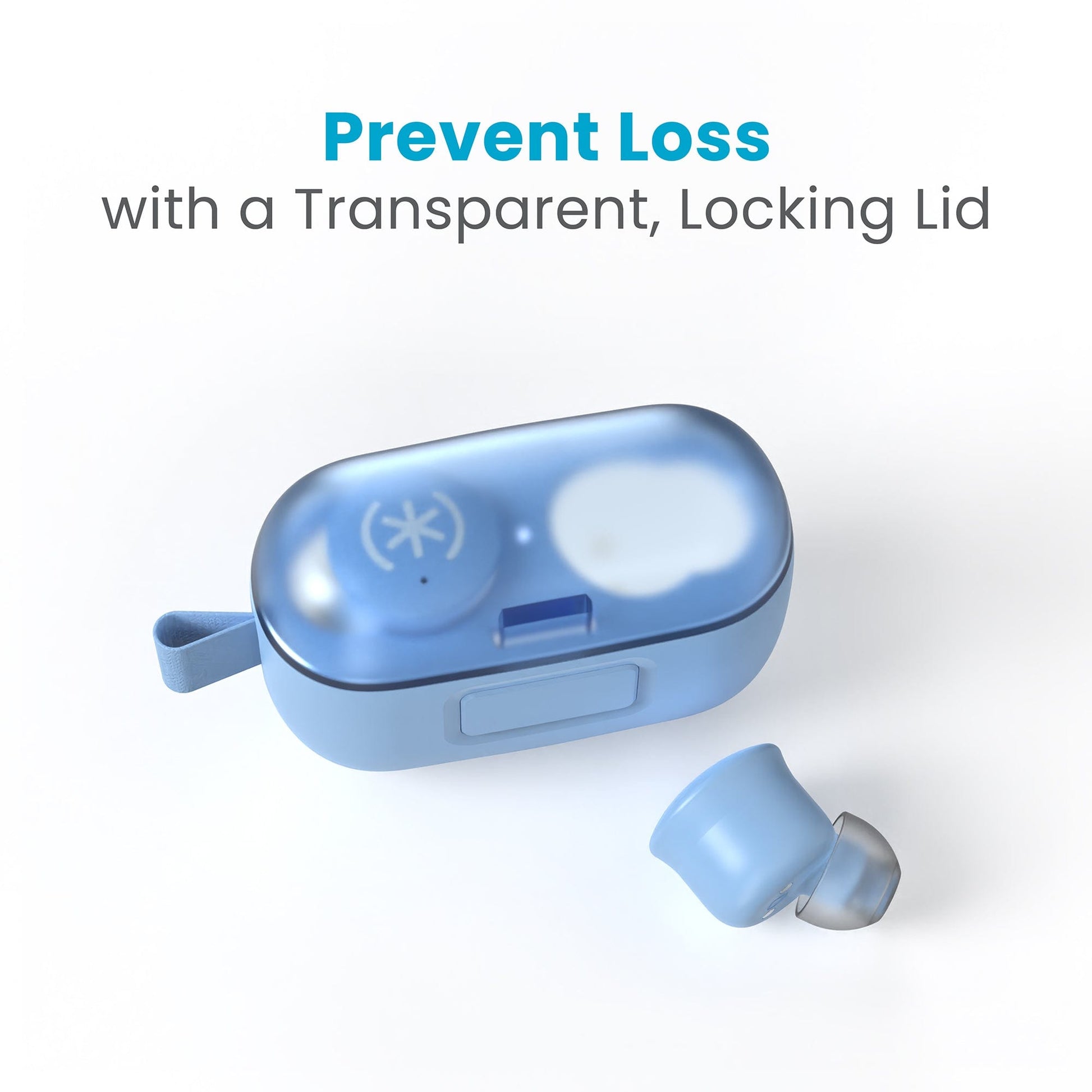 GEMTONES™ Play True Wireless Bluetooth earbuds are designed to help prevent earbud loss by having a locking case lid that is translucent with a contrasting color beneath the earbuds to make it obvious when one is missing.