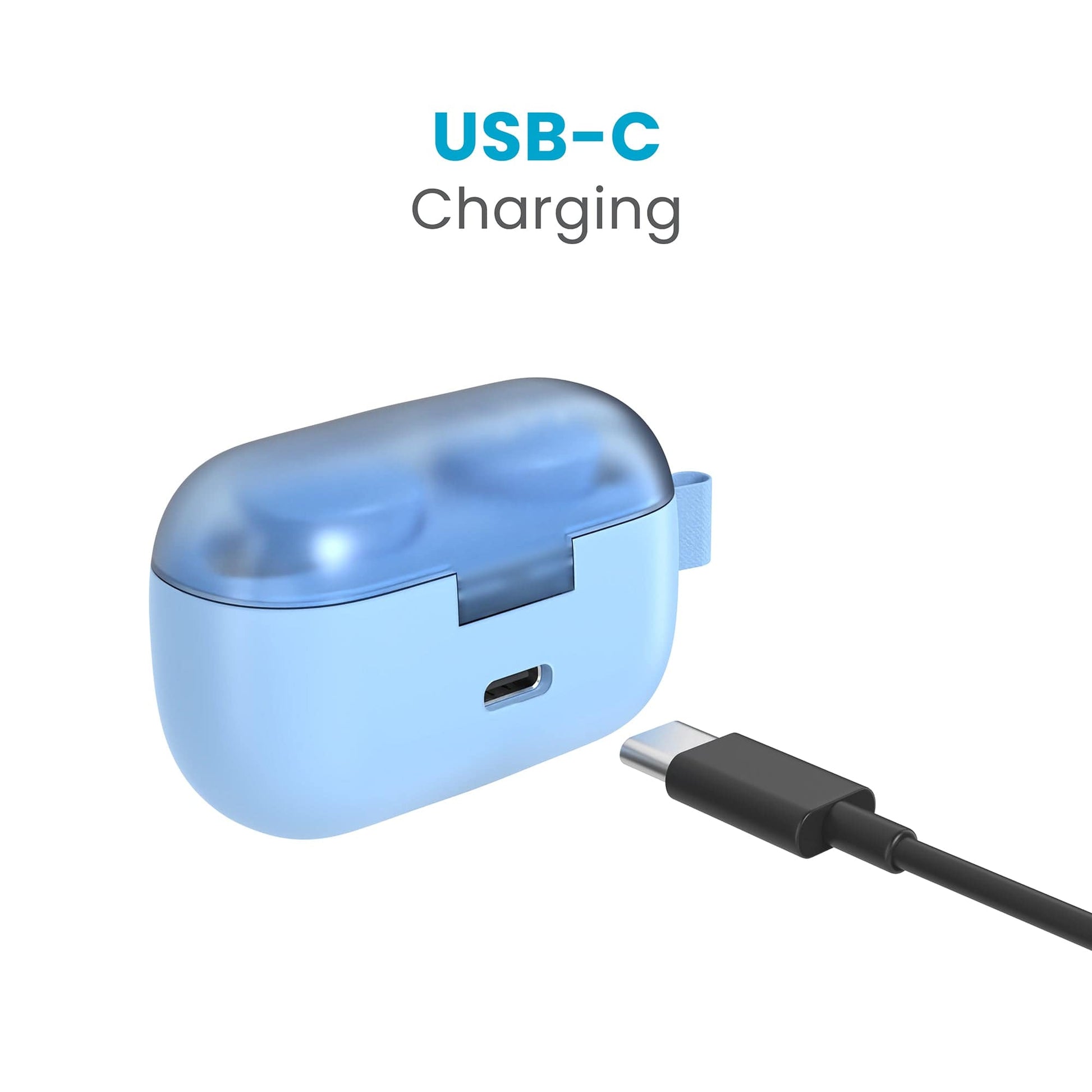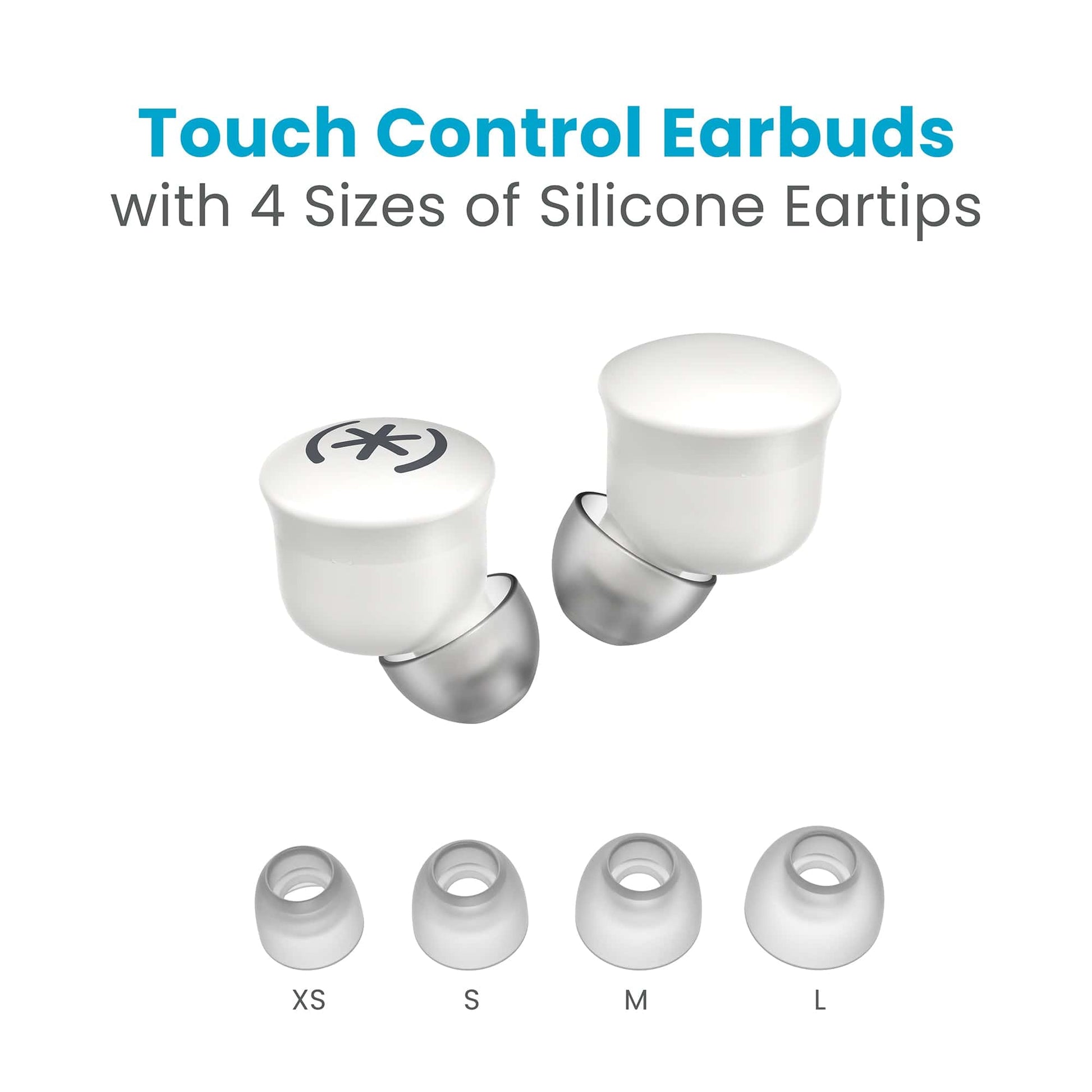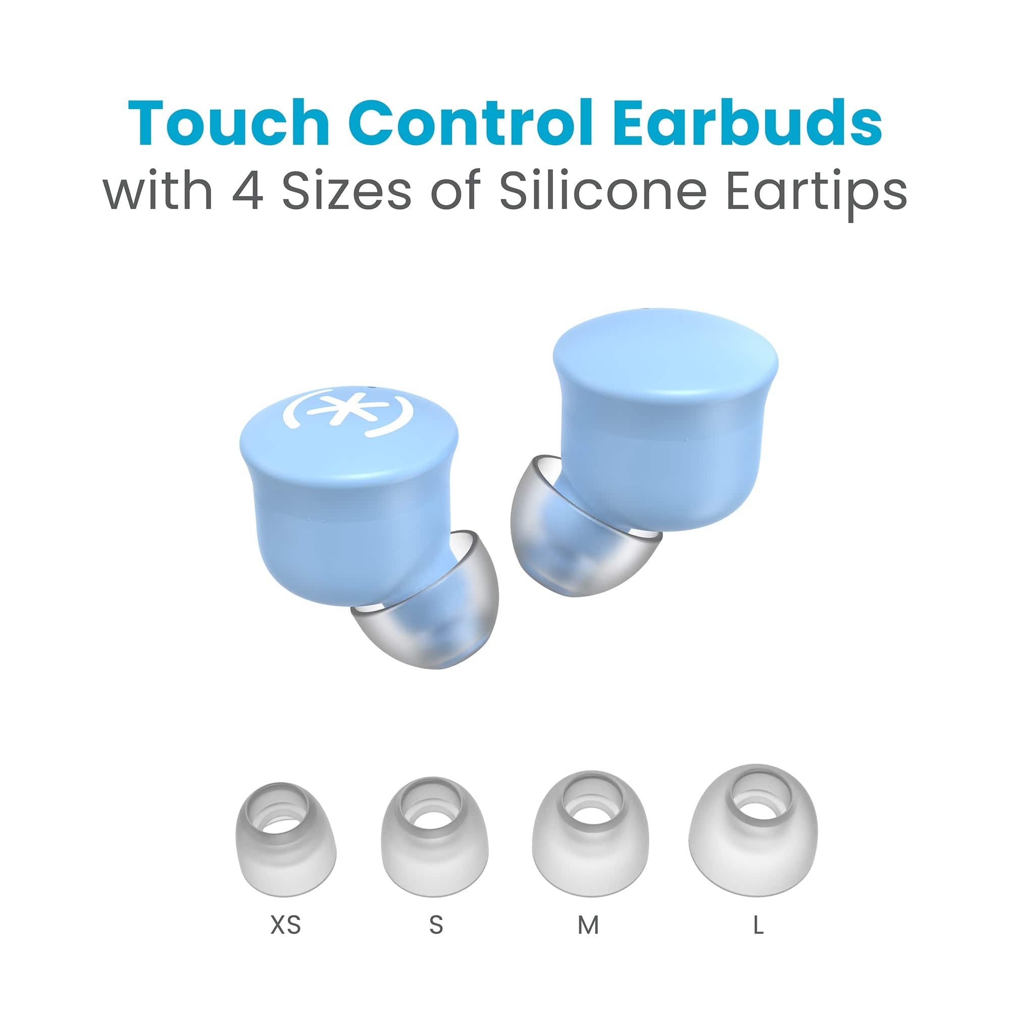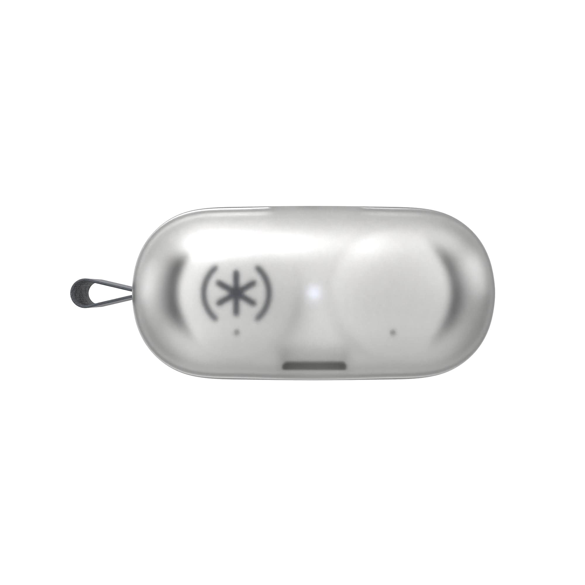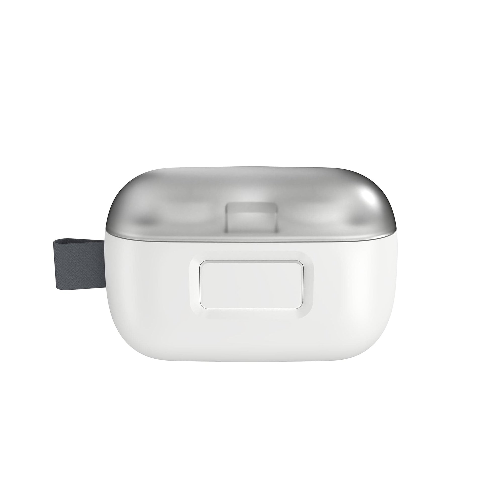 GEMTONES™ Play True Wireless Bluetooth earbuds are designed to help prevent earbud loss by having a locking case lid that is translucent with a contrasting color beneath the earbuds to make it obvious when one is missing.