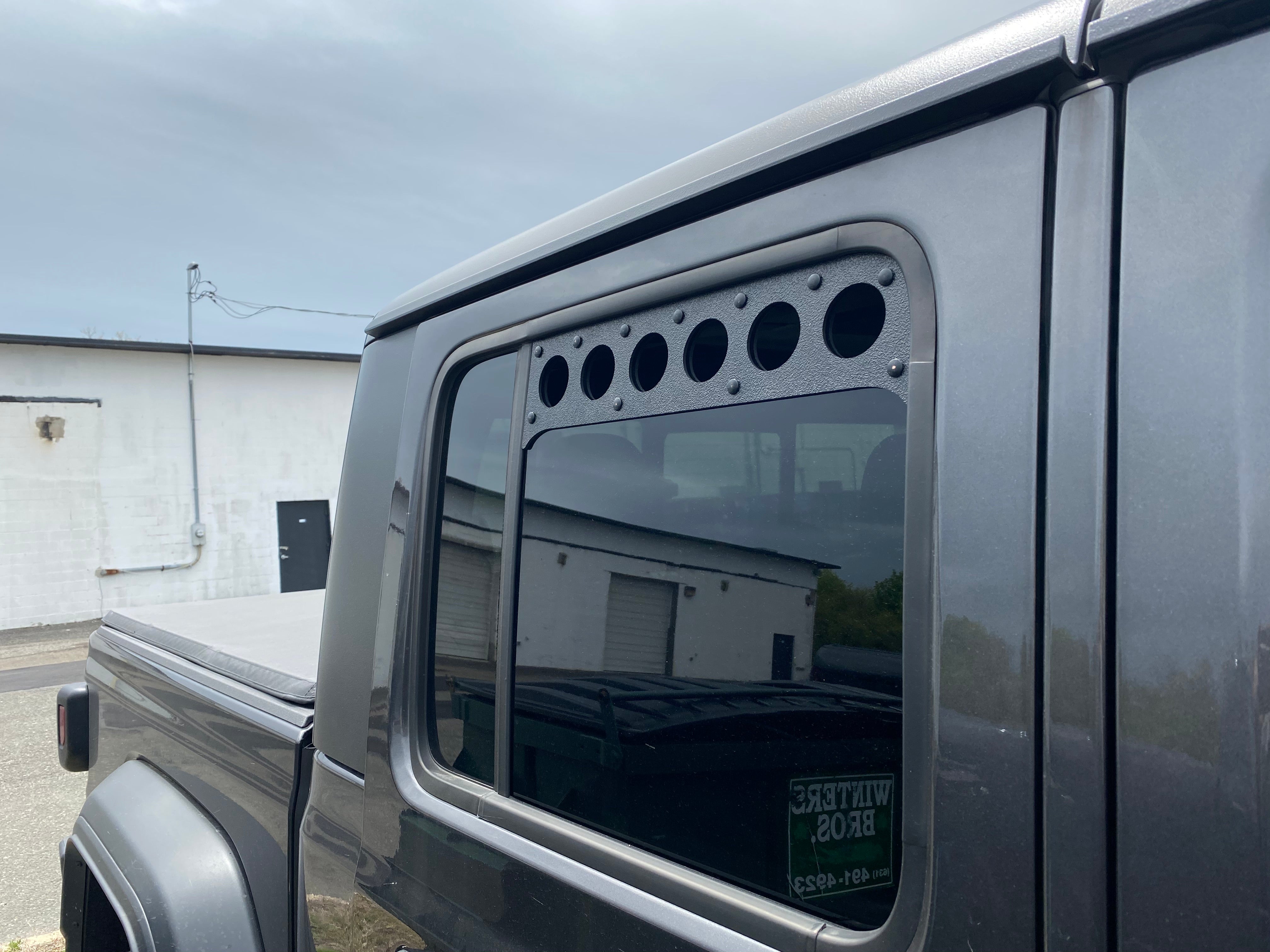 These window vents for your 2018-2023 Jeep Gladiator/JL Wrangler can be used in several ways. Camping to prevent insects from entering the cabin with our mesh screen insert, daily driving to eliminate wind turbulence or if you have pets in the back seat, or stand out from the others at a show.