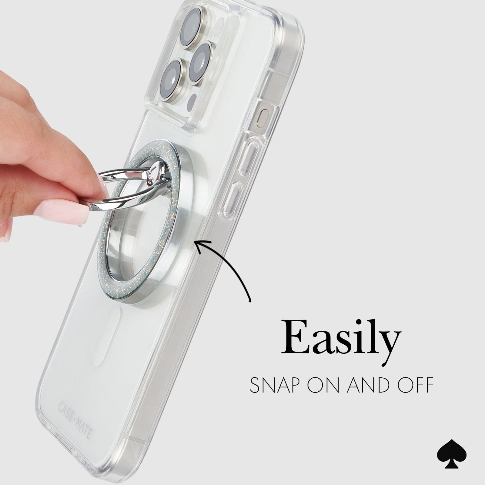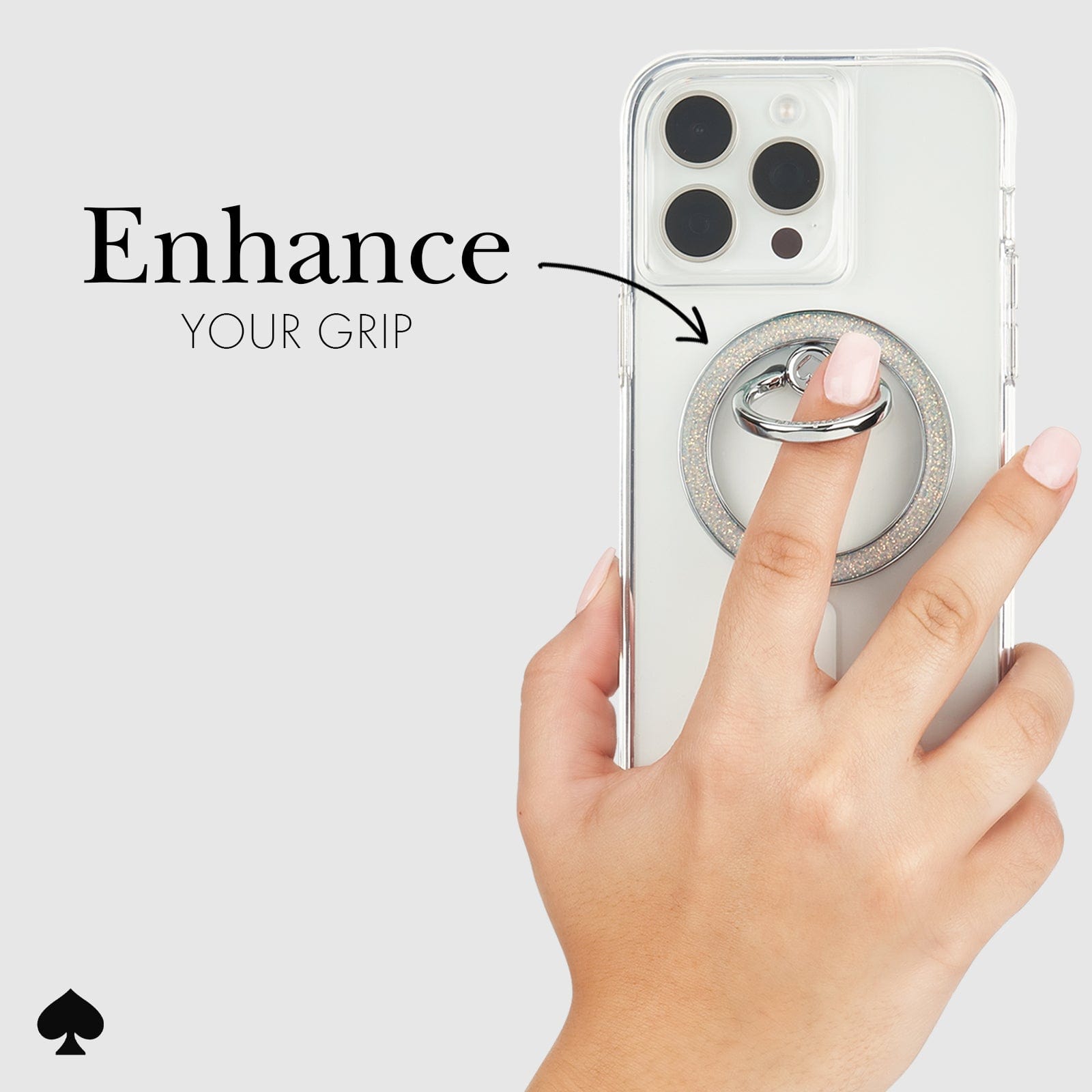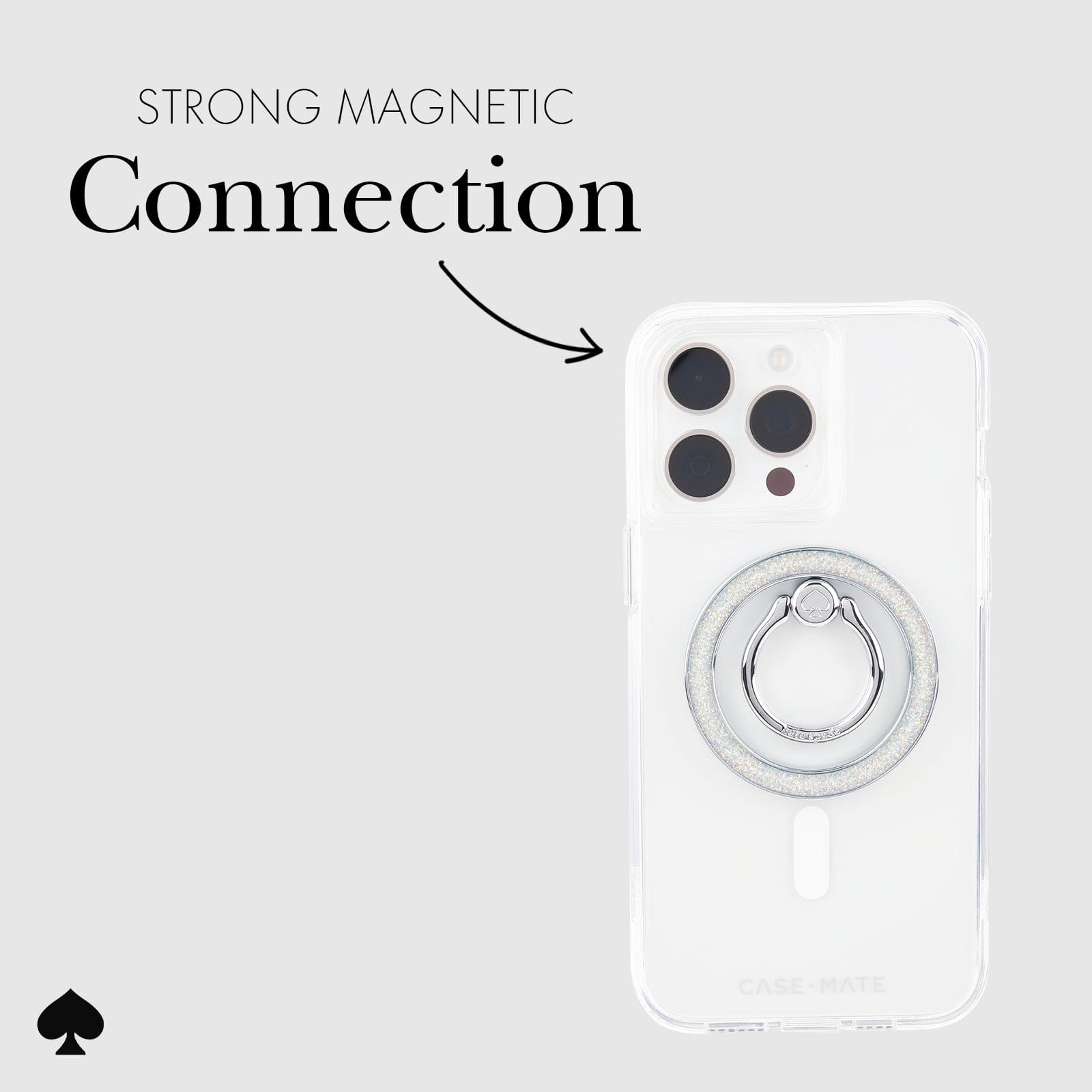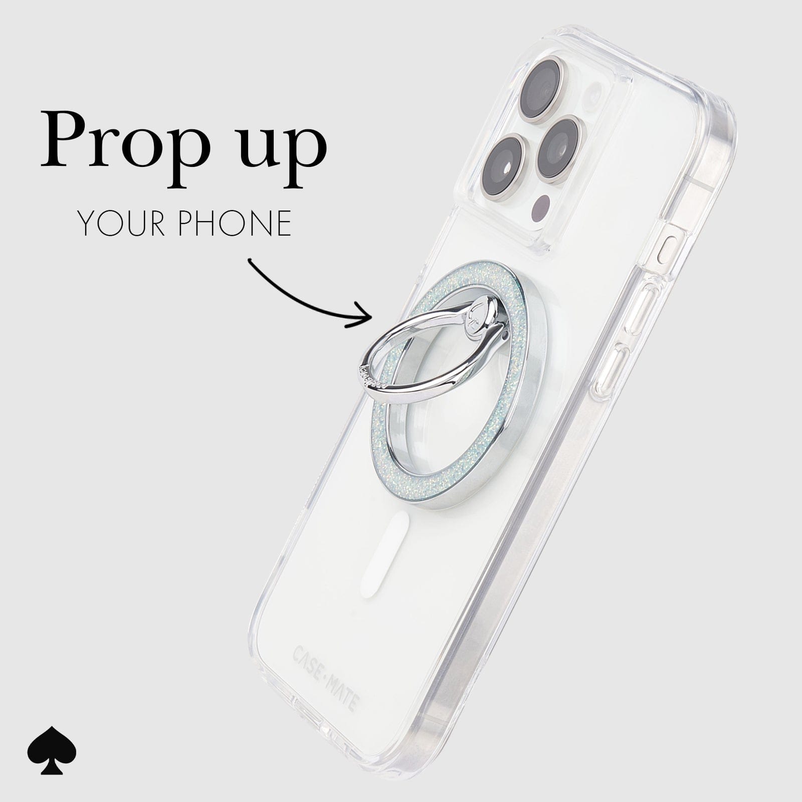 It's always a good time to add extra grip to your phone. The strong built-in magnets hold up to 3x the weight of your phone, so you can easily text, scroll, and snap pictures one-handed. Prop up your phone and rotate 360° for the perfect view when watching your favorite show. Easily accessorize with the MagSafe Ring Stand on any MagSafe-compatible case or device to show off your style!