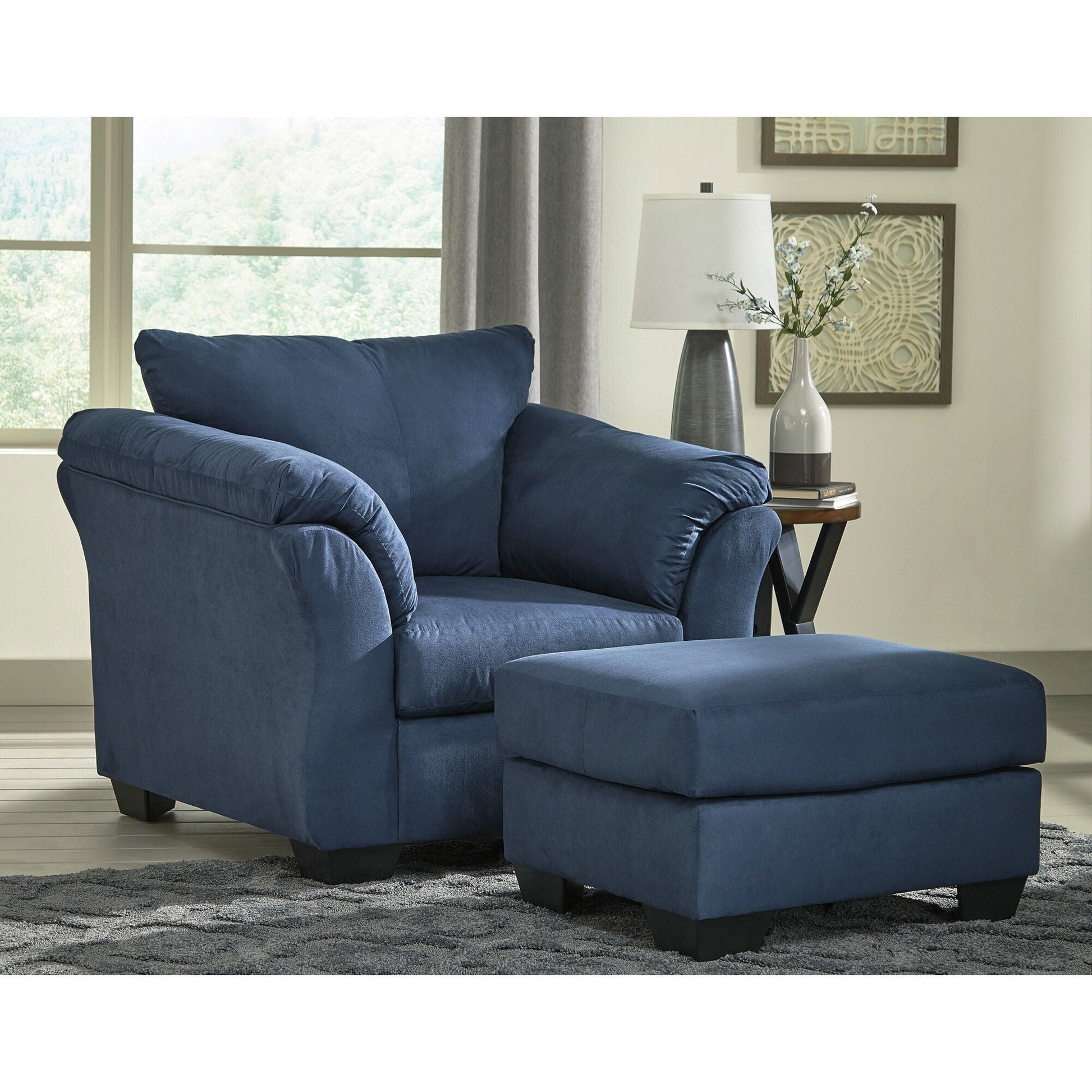 The Marcy chair has curves! The flared frame and pillow back styling give this easy chair—and your room—a healthy dose of attitude. High-resiliency foam cushions are wrapped in thick poly fiber and covered in soft, lustrous polyester upholstery. The frame is glued, stapled and blocked at corners for durability.