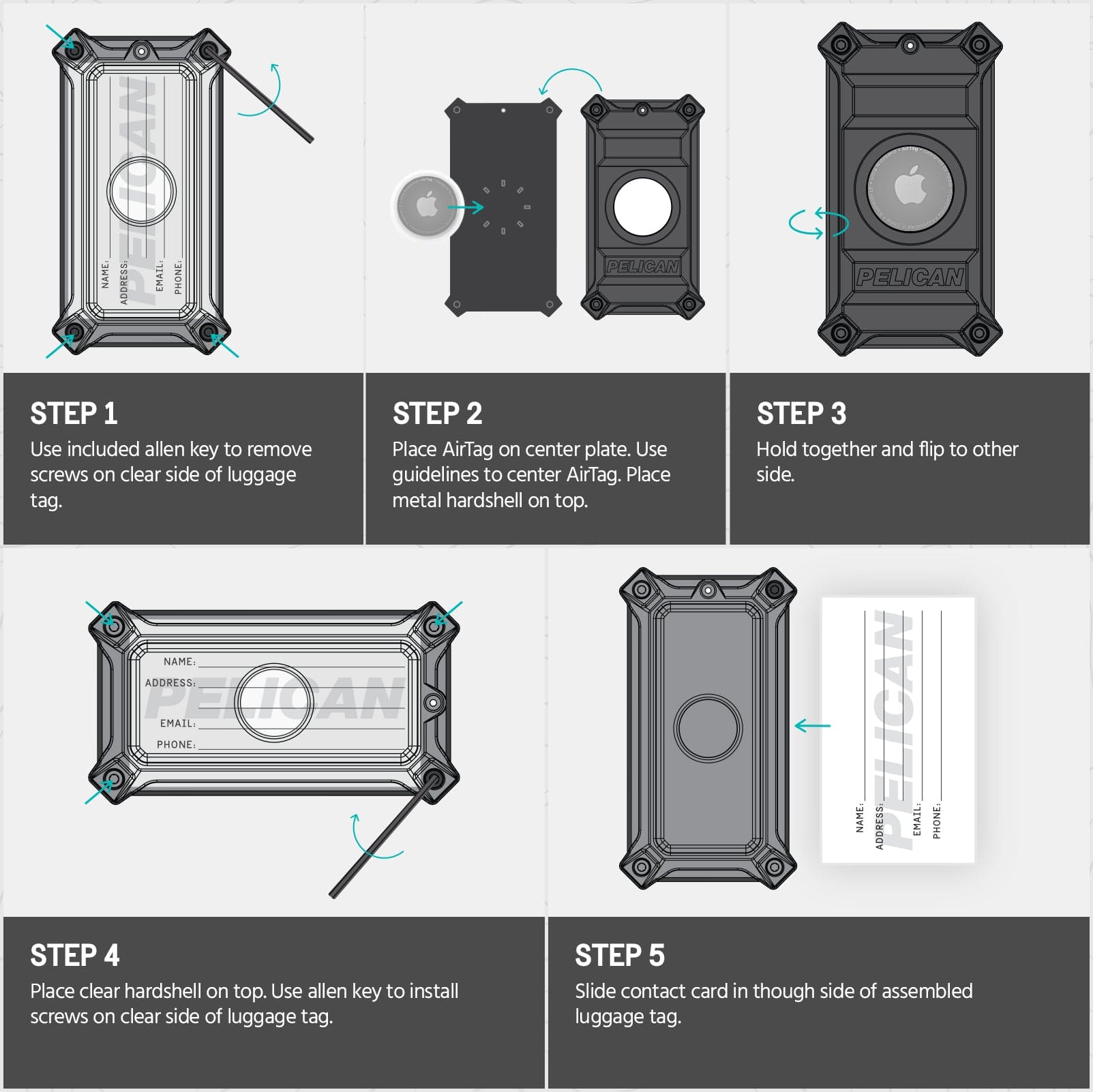 Track your luggage and equipment with the rugged Pelican Protector Luggage Tag. The luggage tag holds an airtag and name card in a scratch resistant, steel plate reinforced, protective two piece design. The luggage tag opens and closes with real screws to insert an Apple AirTag and name card.