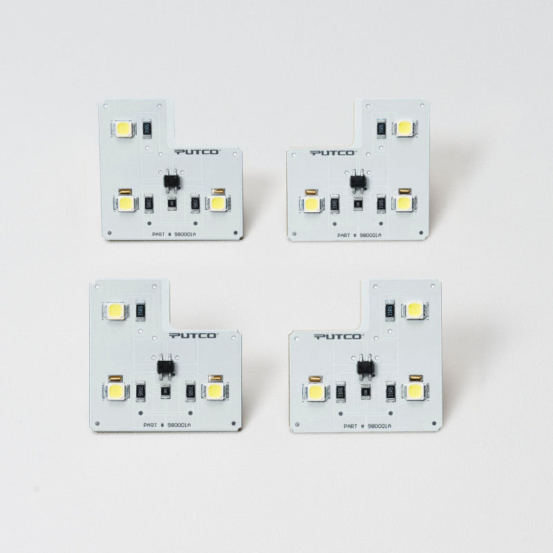 The Brightest Dome Light LED Upgrade Available! Premium LED Lights:Produces a brilliant 13,000K Light that is 18x brighter than the vehicles factory bulb. Plug & Play Install:Requires no wiring knowledge and includes a custom connector for each light. Vehicle Specific Design:Each bulb is designed for your specific vehicle to ensure an OEM fit. Longer Life Expectancy: Rated at over 50,000 hours of continuous use. Chip on Board: Designed with the latest C.O.B. LED technology. Kit Includes:All replacement dome light LED bulbs and connectors for the selected vehicle (bulb amount depends on vehicle). Made by Putco, Des Moines, IA.