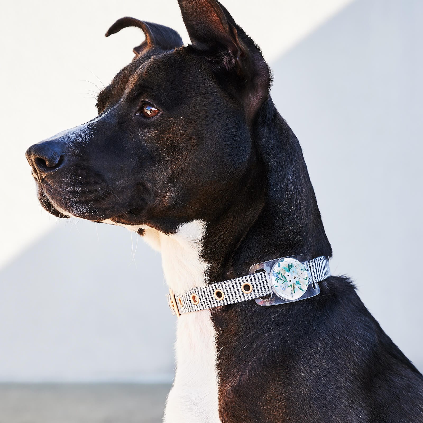 This protective and stylish AirTag Case for Dog Collars securely holds your AirTag device in place and fits comfortably around your pet’s collar. Attaching the AirTag case on your pet's collar is a perfect and easy way to keep tabs on your best friend. Fits collars up to 1 inch wide.