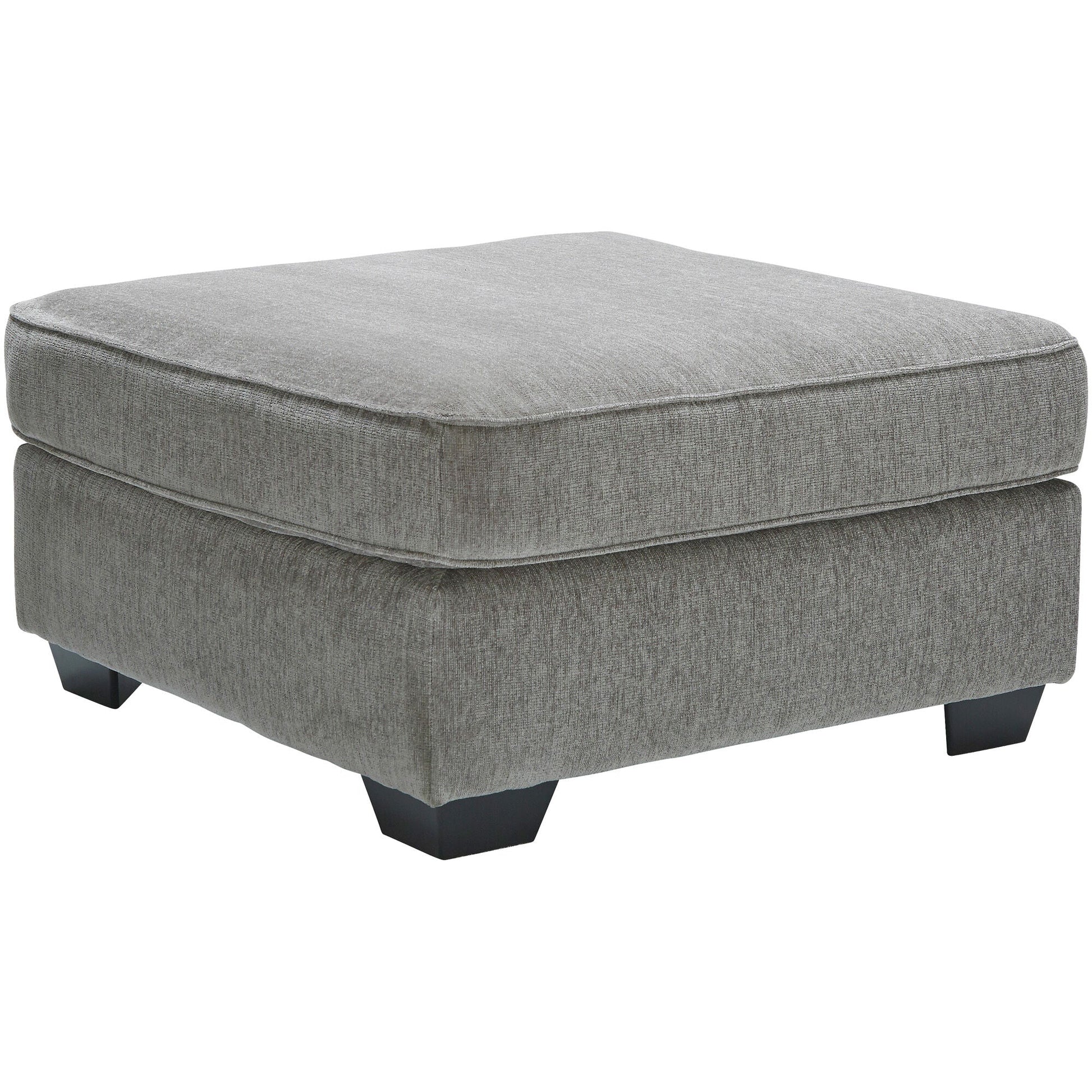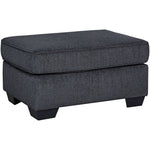 The Riles ottoman is a natural match for the rest of the Riles collection, but it's versatile enough to pair with your existing furniture. This simple, versatile ottoman is as casual or as formal as you care to make it. Quality construction features include a corner-blocked frame, high-resiliency foam cushions wrapped in thick poly fiber, and exposed wood feet with a faux wood finish.