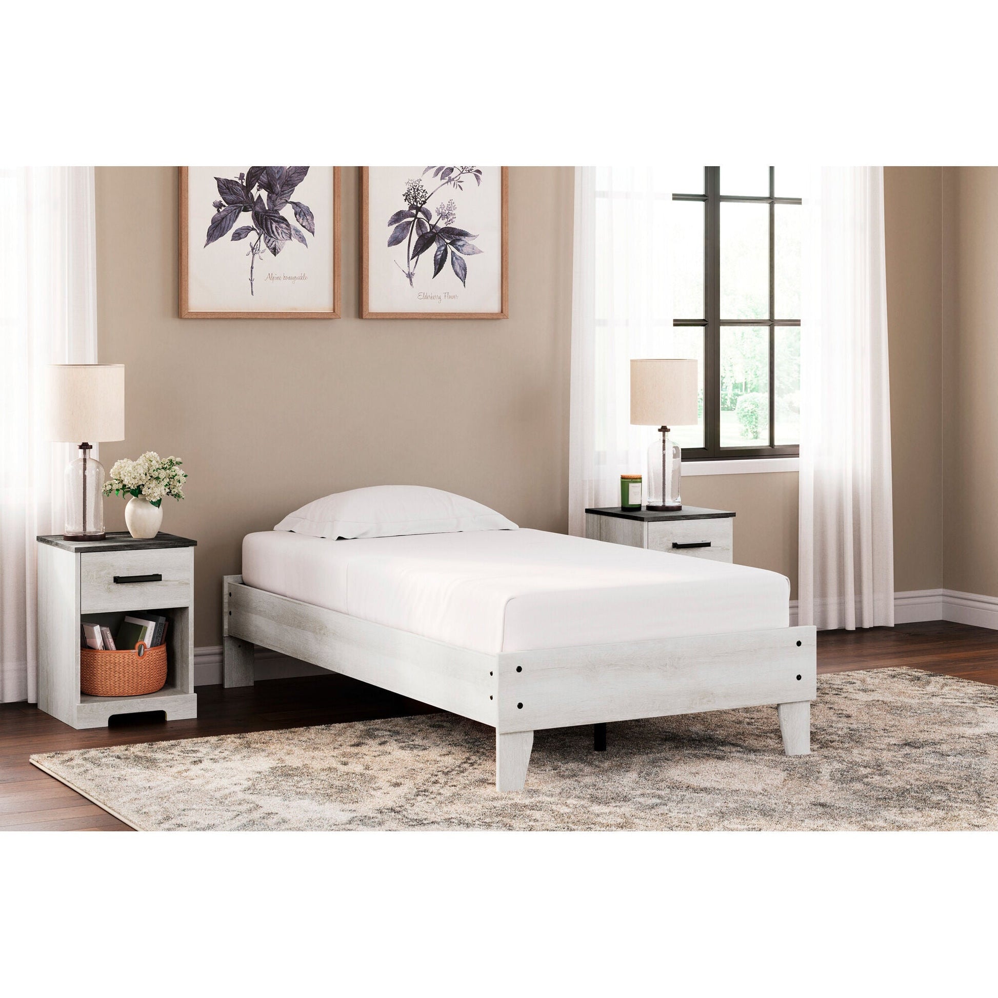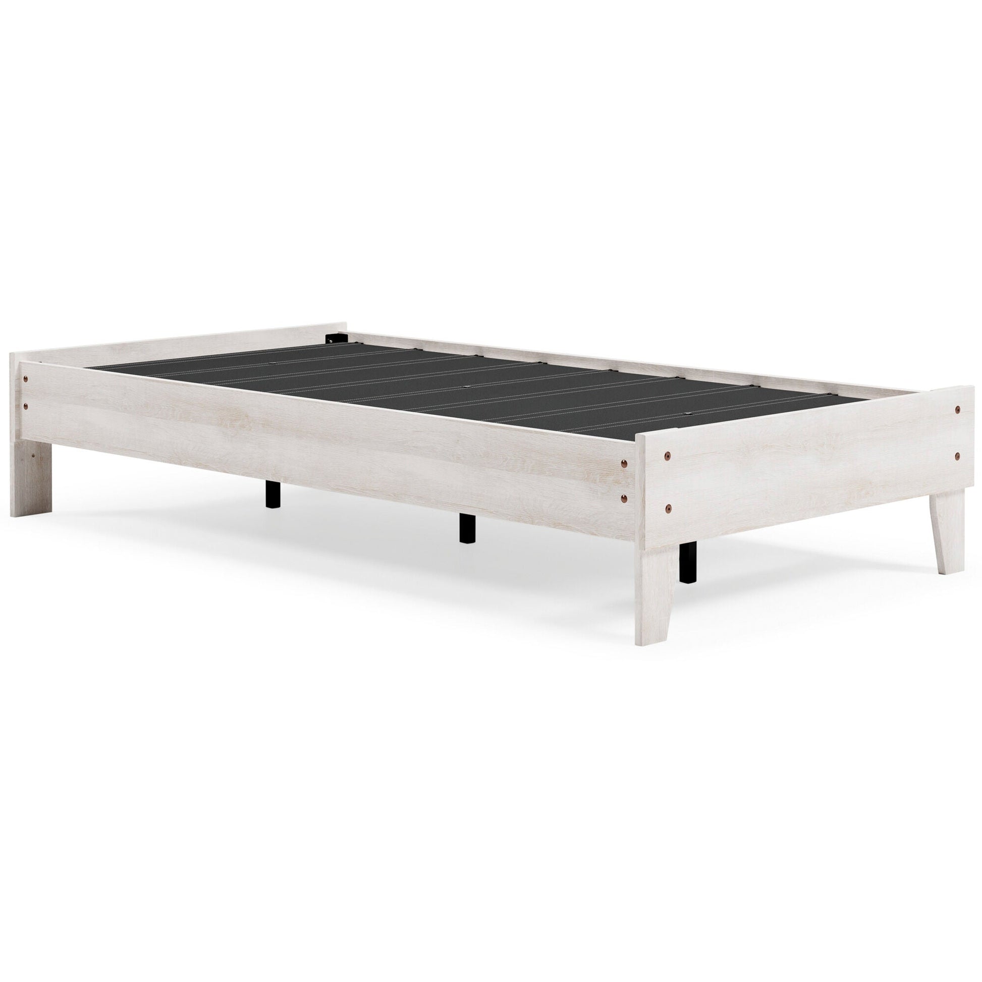 Give provincial a new meaning with the chic look of this twin platform bed. The whitewash distressed finish keeps this piece light and fresh, as does its minimalist aesthetic.