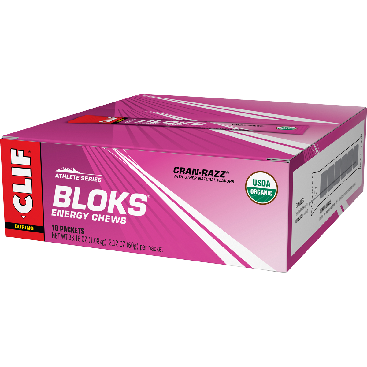 Clif Bloks Energy Chews provide quick, chewable, energy to athletes while training and racing. Bloks come in 33-calorie cubes, with sleek and portable packaging, making it easy to customize and track caloric and electrolyte intake during long outings and races.
