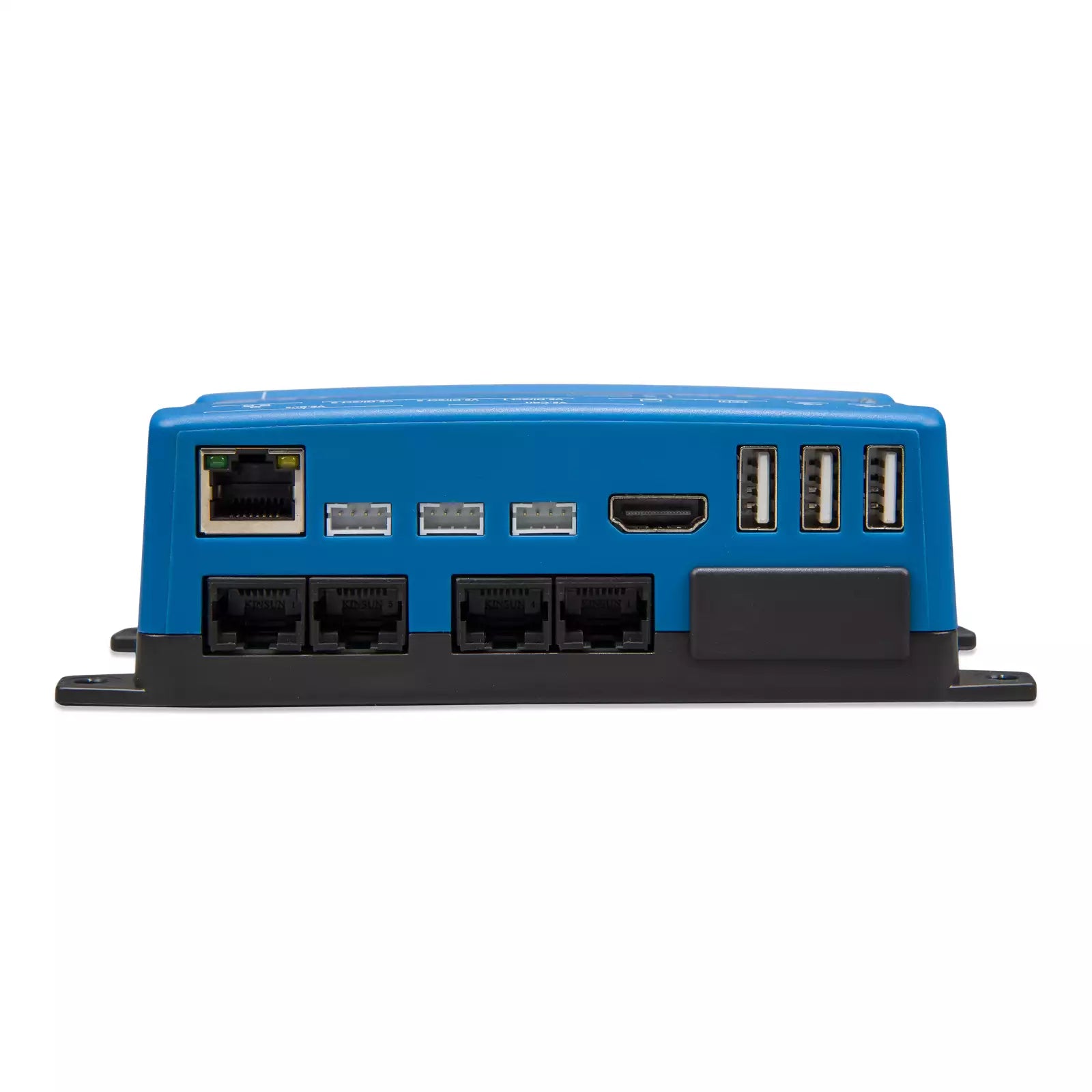 The Cerbo GX optimizes your systems' components in real-time and maintains their optimal functioning. Its Dual Core Processor and additional CAN-bus port enable support for larger systems, while closely monitoring (lithium) batteries and up to 25 connected VE.Can solar chargers. The new NMEA 2000-out support allows for seamless integration into any boat's network. With four tank and temperature ports, as well as three VE.Direct ports, three USB ports, four digital inputs, and two relays, the Cerbo GX offers improved control and maximized performance.