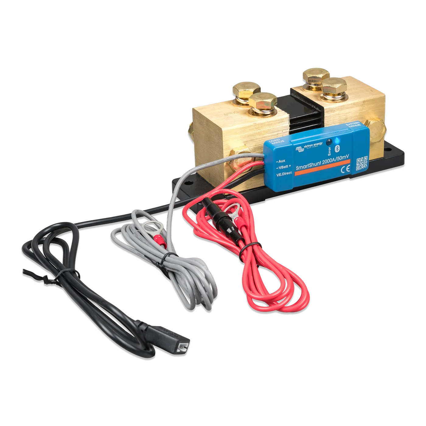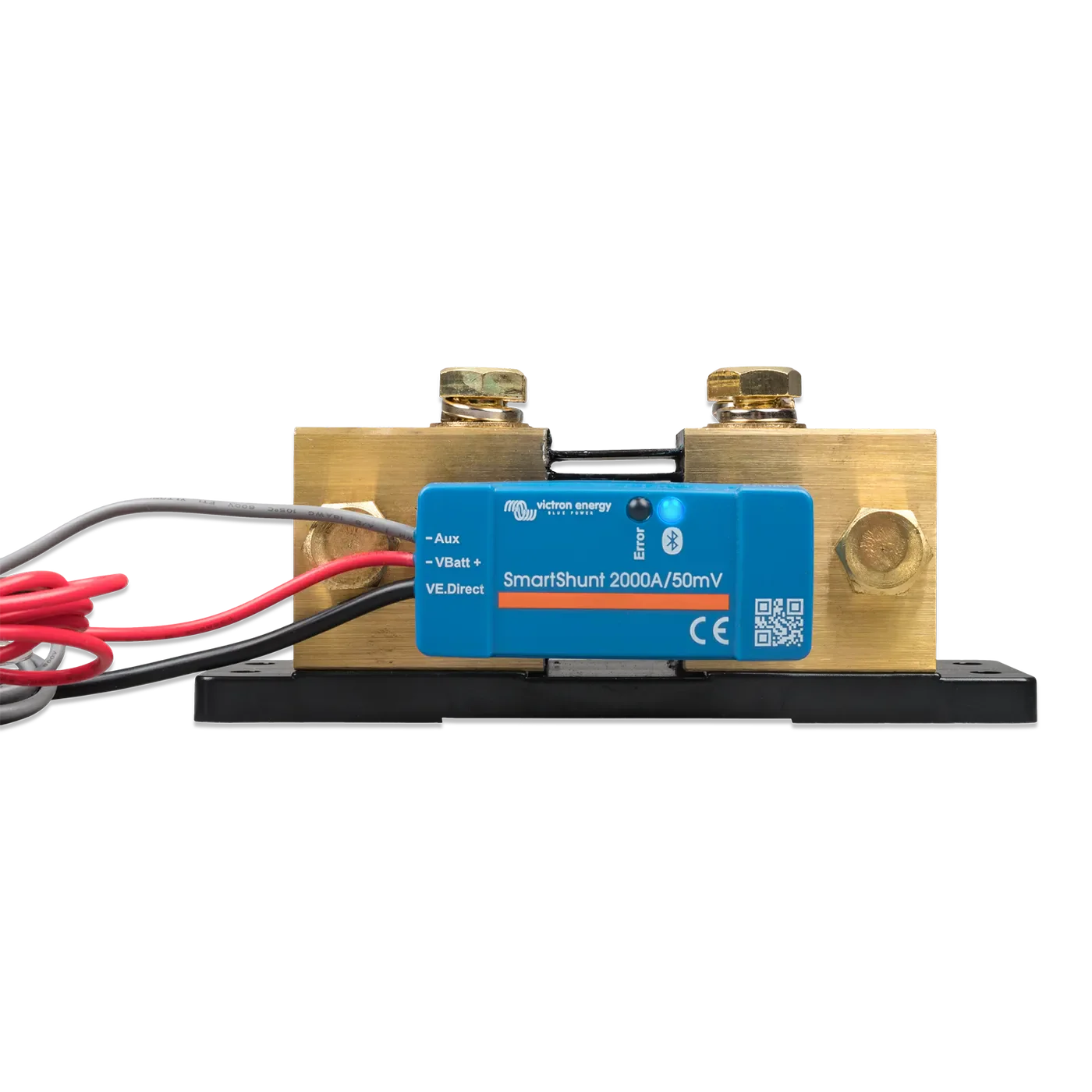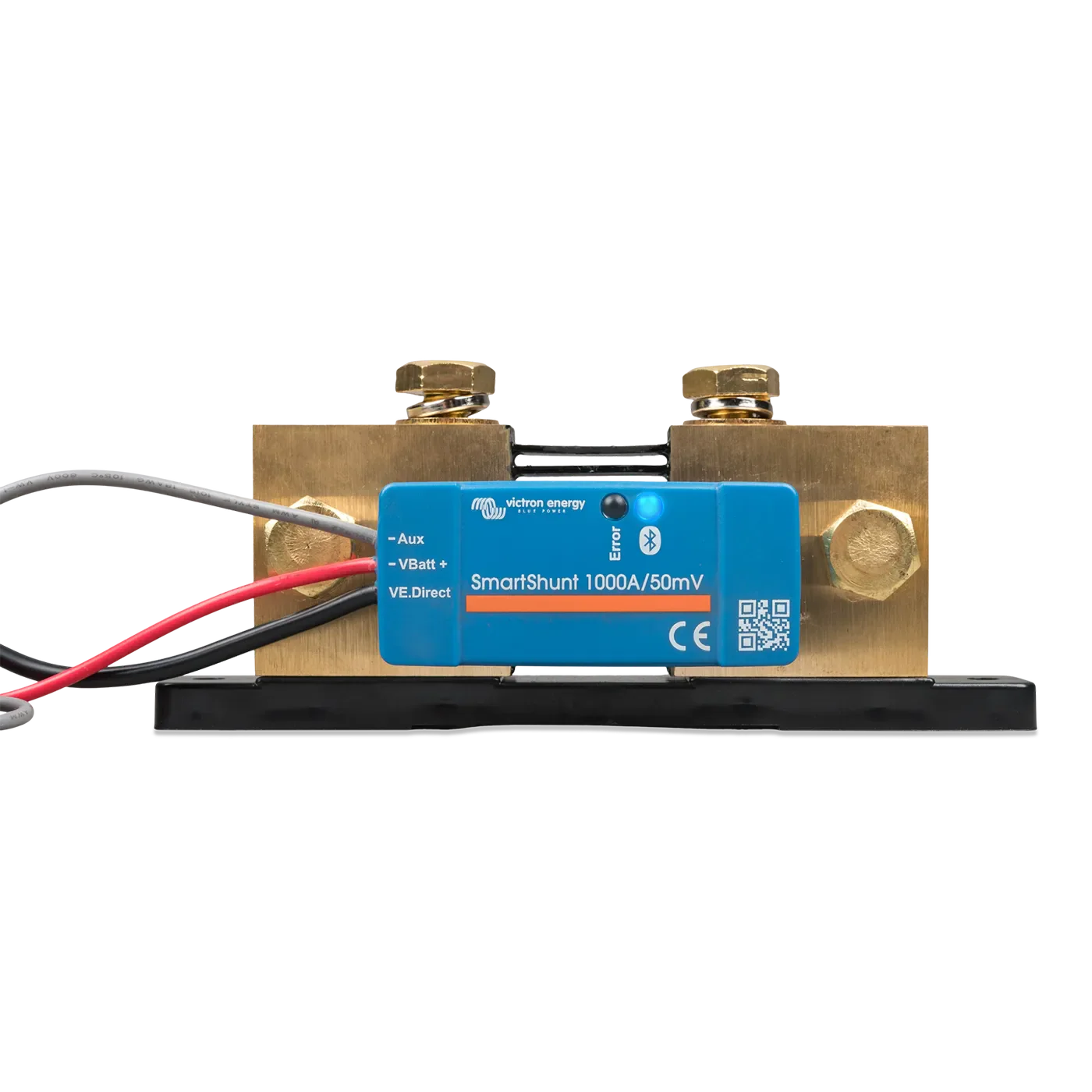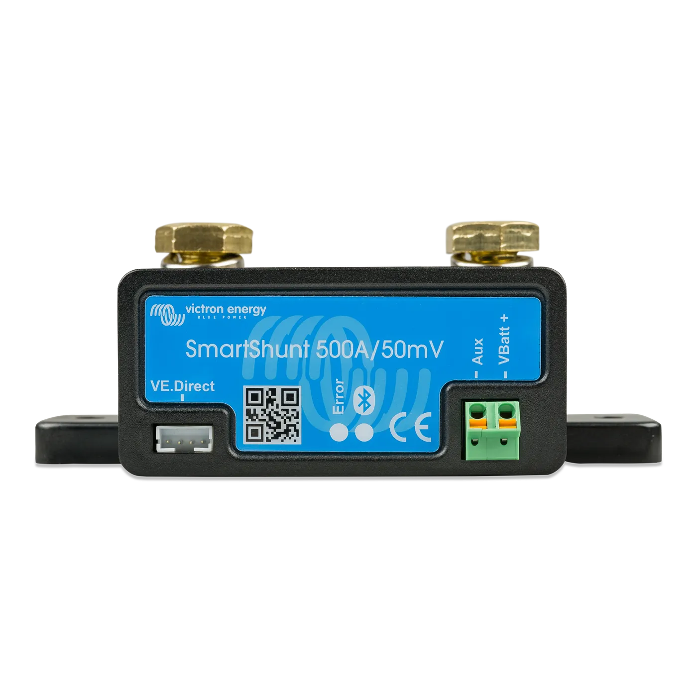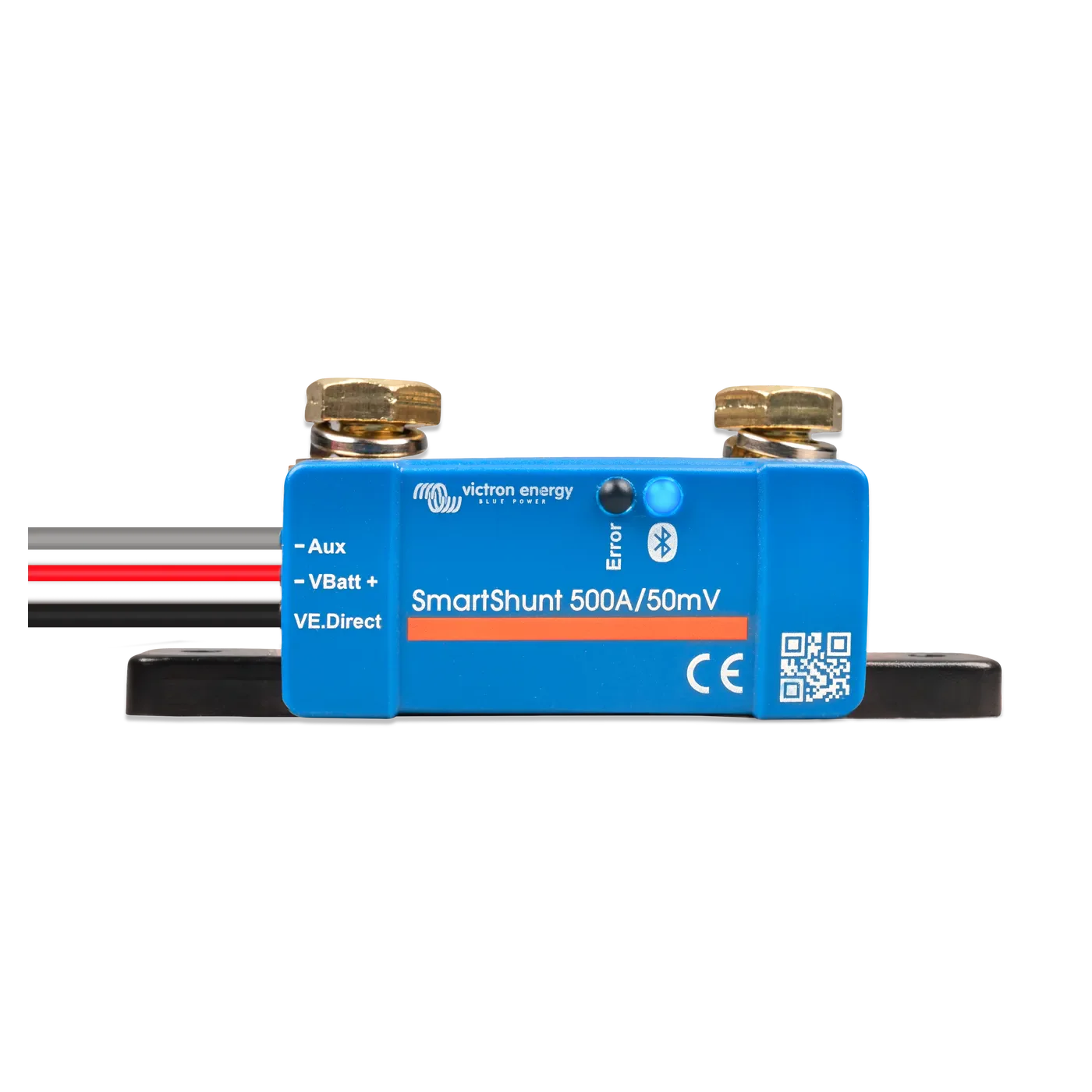 The SmartShunt is an all-in-one battery monitor with a display on your mobile device. The SmartShunt connects via Bluetooth to the VictronConnect app on your mobile device, allowing you to monitor all battery parameters and much more.