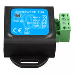 The SolidSwitch 104 will switch DC loads of up to 70V/4A and can be controlled by a low power digital signal. The DC load can be resistive, capacitive or inductive (such as the coil of a high-power contactor). It is not reverse polarity protected and not short circuit proof.